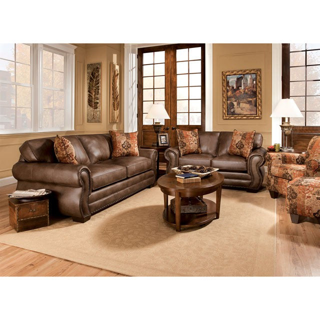 This beautiful sofa collection combines traditional style and sophisticated designcomplimenting virtually any style decor. This sofa collection features a generously well-padded back and a comfy seat cushions - fully upholstered all the way down to the floor for great support and comfort. Wide wooden feet and dashing nailhead trim outlined the collection arms and base for luxurious comfort.