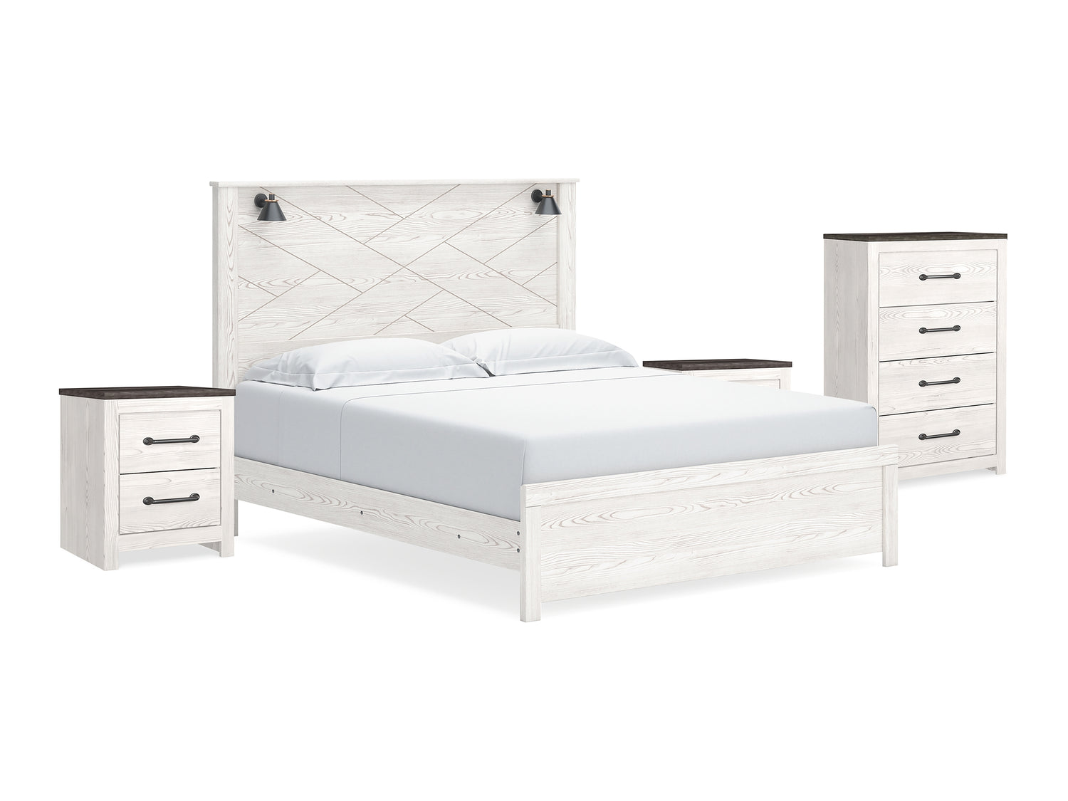 Gerridan White/Gray King Panel Bed, Chest And 2 Nightstands