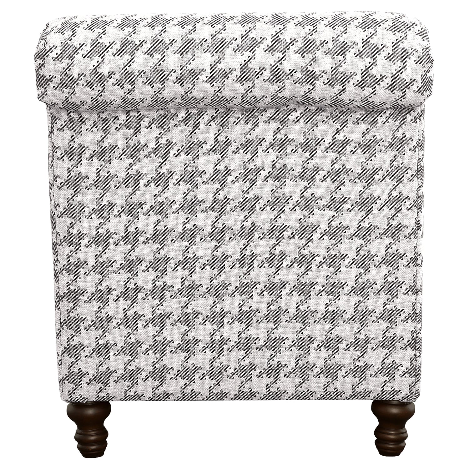 Create a beautifully styled living room that exudes classic character. This modern farmhouse accent chair makes any living space feel a bit more inviting. A rolled back and tailored English arms add a dash of character to its classic silhouette. A plush, padded seat creates a comfortable space to enjoy hours of casual lounging. This grey chair boasts a charming houndstooth pattern all over for a charming accent to any room.
