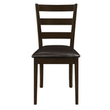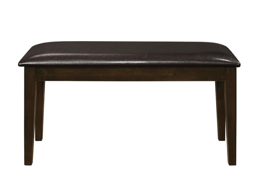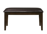 Be it everyday meals with the family or casually catching up with friends over wine in the dining room, this five-piece set is the perfect fit for your home. Crafted from Asian tropical hardwood and Okume veneer, the rectangular table boasts straight clean lines and bold tapered legs. Three chairs with comfy padded brown leatherette seats bolster the table, while the leatherette bench adds functionality. The classic details also add an element of tradition to any occasion. This ensemble is sure to be a foundation of fond memories.