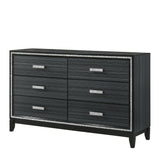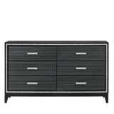 Classic design with touches of modern aspects makes this Haiden Dresser ideal for any bedroom. The piece offers a rectangular tabletop and six storage drawers for displaying or organizing. It also features a glamorous shimmering silver accent trim that adds richness to design. The drawer handles with the same shimmering silver tie them all together to create a cohesive look. The black finish makes it easy to fit into already existing decor.