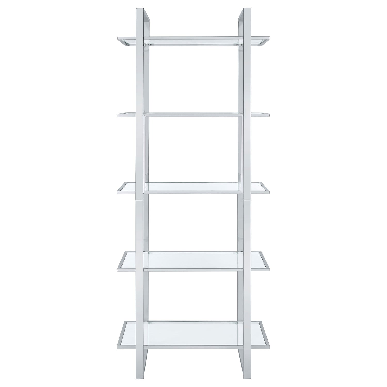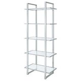 - Item Name: Hartford 79-inch 5-shelf Glass Bookshelf Chrome