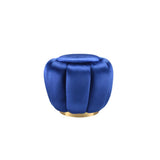Whether you're picking up your feet to relax or using it as an extra table during a party, this Heiress ottoman will be a great addition to any arrangement. Founded a top metal round base in a gold finish, the design of this piece will go well with any home decor and furniture. Fully padded with sapphire blue velvet or bubblegum pink velvet, this understated ottoman is small in size but bursting with function.