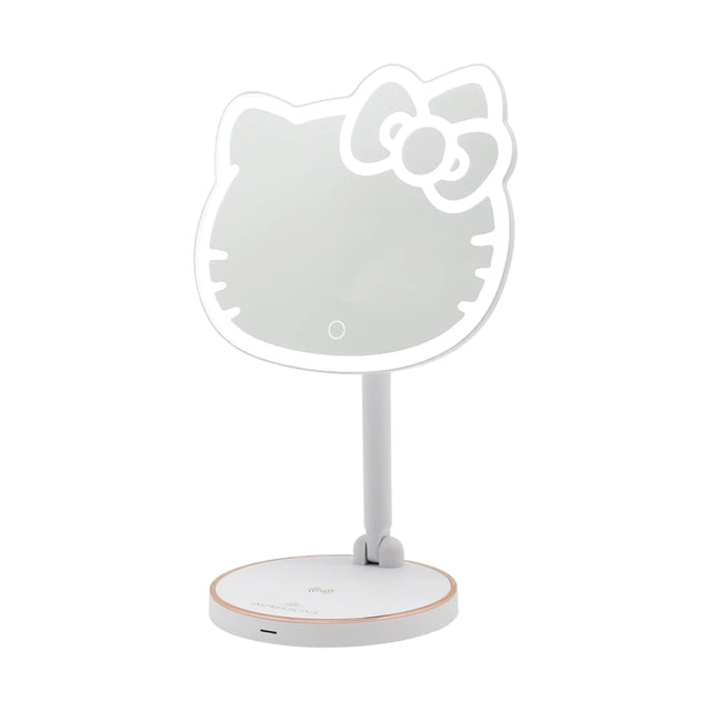 Get ready with the cutest mirror, the Hello Kitty LED Rechargeable Mirror! This mirror is the centerpiece of the Impressions Vanity for Hello Kitty Mirror set. The mirror is shaped after Hello Kitty and outlined with an ultra-bright LED strip light. To power up the mirror, simply tap the circle touch sensor on the mirror. To adjust the brightness, press and hold the touch sensor to your perfect lighting.