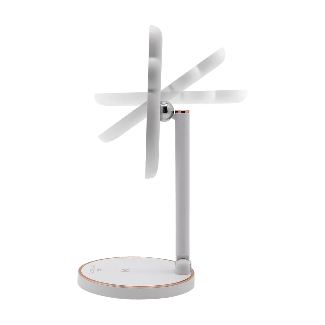 The mirror is attached to the stem by a magnetic ball joint that allows for 360-degree turning and pivoting to adjust to your comfortable angles. The mirror can detach from the ball joint for easy travel storage and the stem can fold down.