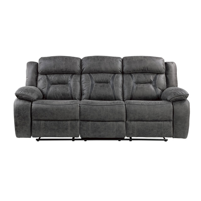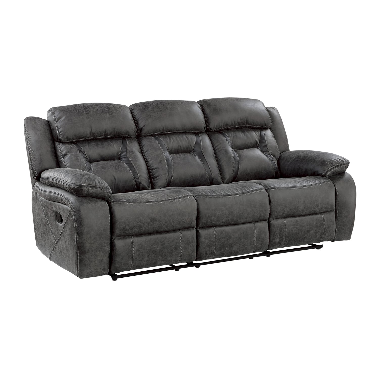 With the addition of the madrona hill collection, your vision of creating the ideal setting for rest and relaxation will be brought to fruition and become a reality. this comfortable sofa is available in a polished microfiber that is gray, and it has contrast stitching and decorative accents that make it a distinctive option for homes that range from transitional to modern in style. the manual motion mechanisms in the dual end reclining seats allow you to move from a seated position to a reclined position with the simple pull of a tab that is positioned on the side of the seat.