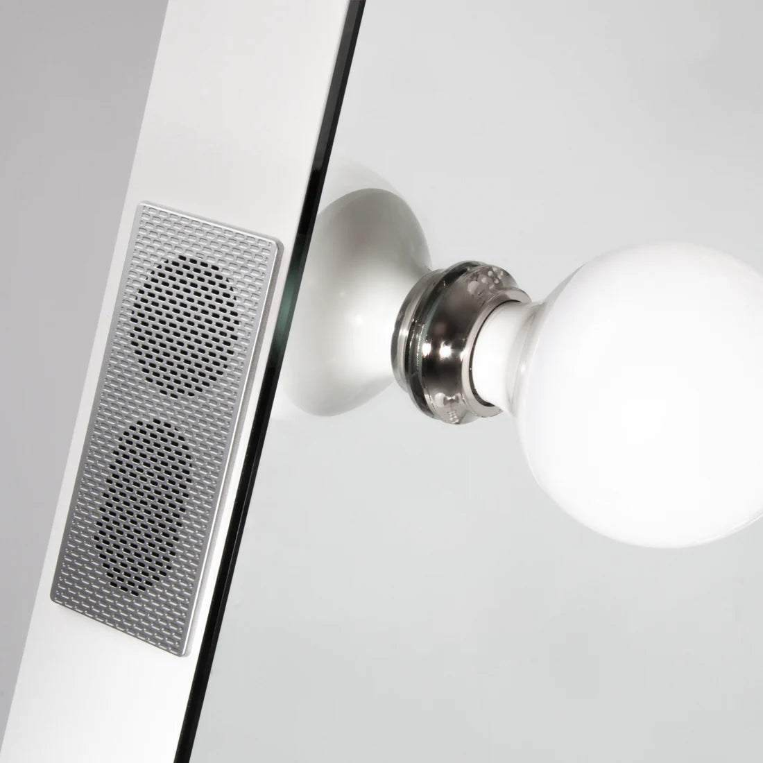 The Hollywood Premiere Full Length Vanity Mirror features a wireless Bluetooth speaker that lets you answer calls, adjust volume and play your music.