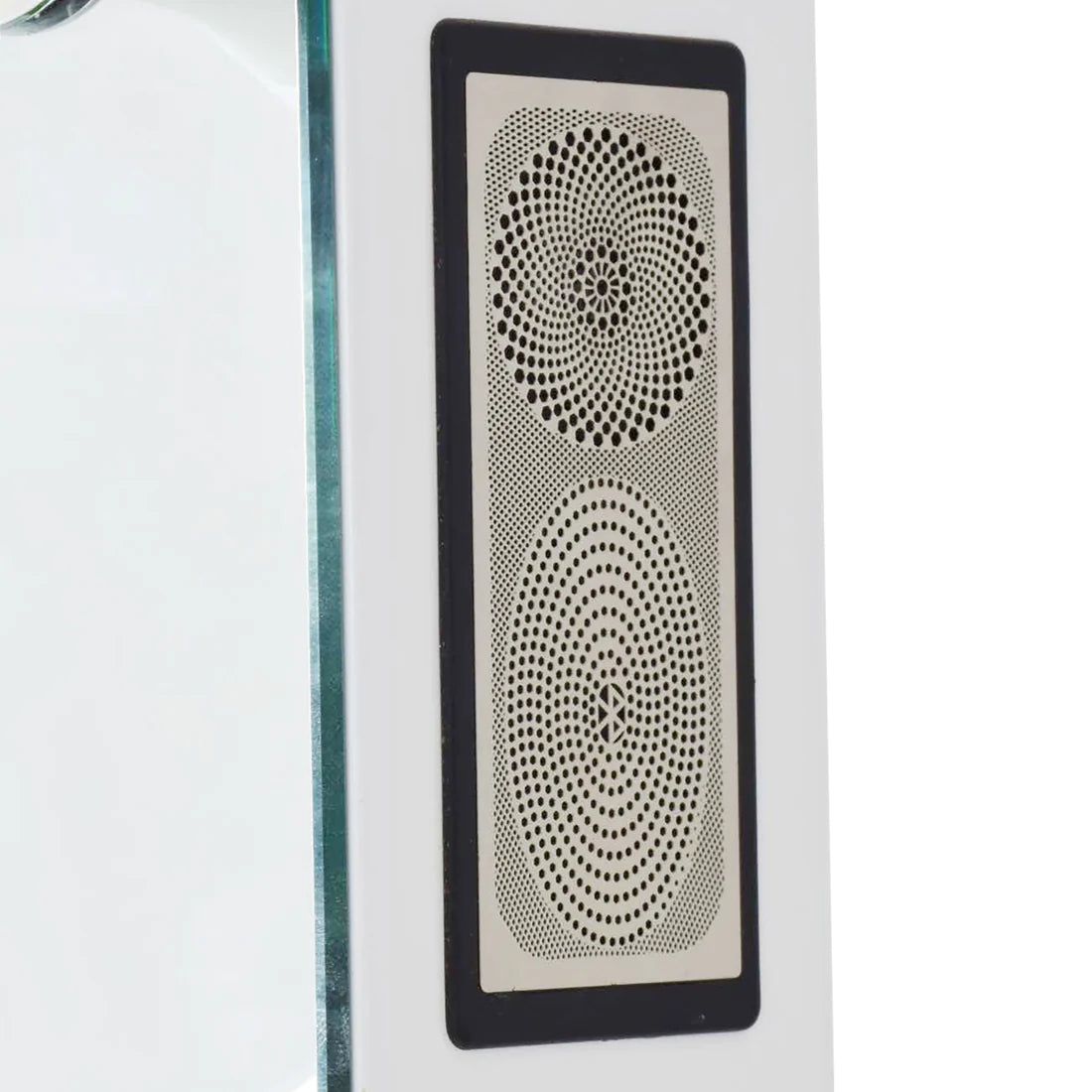 The Hollywood Premiere Pro Max has wireless Bluetooth speakers with touch-sensitive buttons and a backlit LED screen integrated into the mirror for controlling Bluetooth pairing and volume adjustment. It can also let you check the current temperature to make sure you don’t have a makeup meltdown!