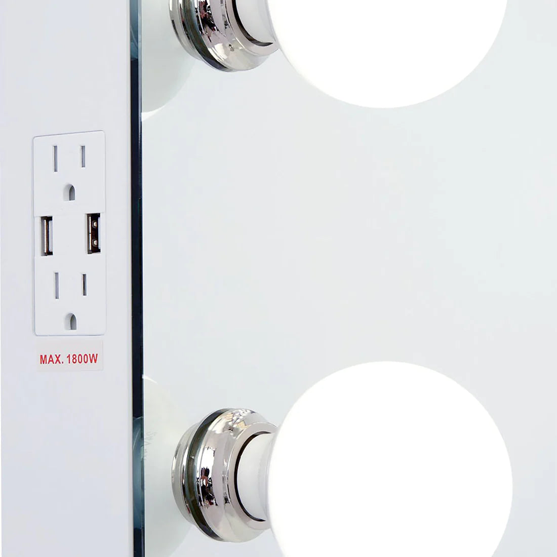 The Impressions Vanity Hollywood Premiere Pro Max Vanity Mirror is the grandest classic vanity experience— the Hollywood Glam design that provides perfect, even lighting and superior mirror reflection clarity. Featuring 19 light sockets for bright lighting with dimming capabilities and equipped with convenient USB and power outlets. The mirror is encased in a robust aluminum body that can easily be wall-mounted with the pre-installed mounting hardware or place it on a SlayStation with the included base!