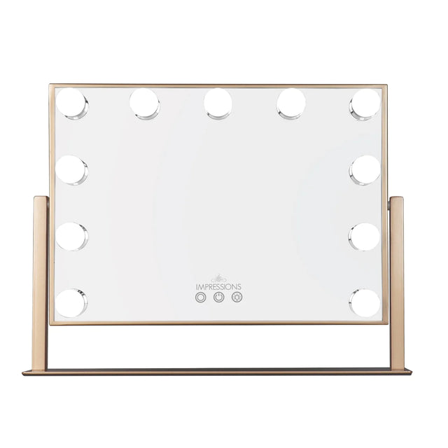Hollywood Tri-Tone Artiste XL Makeup Mirror - Champagne Gold is backordered and will ship as soon as it is back in stock.