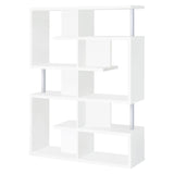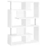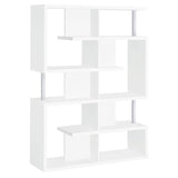 Add an artsy element to a library, living room, or home office. This five-tier double bookcase makes a bold statement with its funky, modern silhouette. Its shelves are arranged in a striking, geometric design for an updated look. This bookcase is crafted from steel, particle board, and engineered veneer for sturdy durability. Whether you choose a black or white finish, its gleaming chrome details pull it together in style.