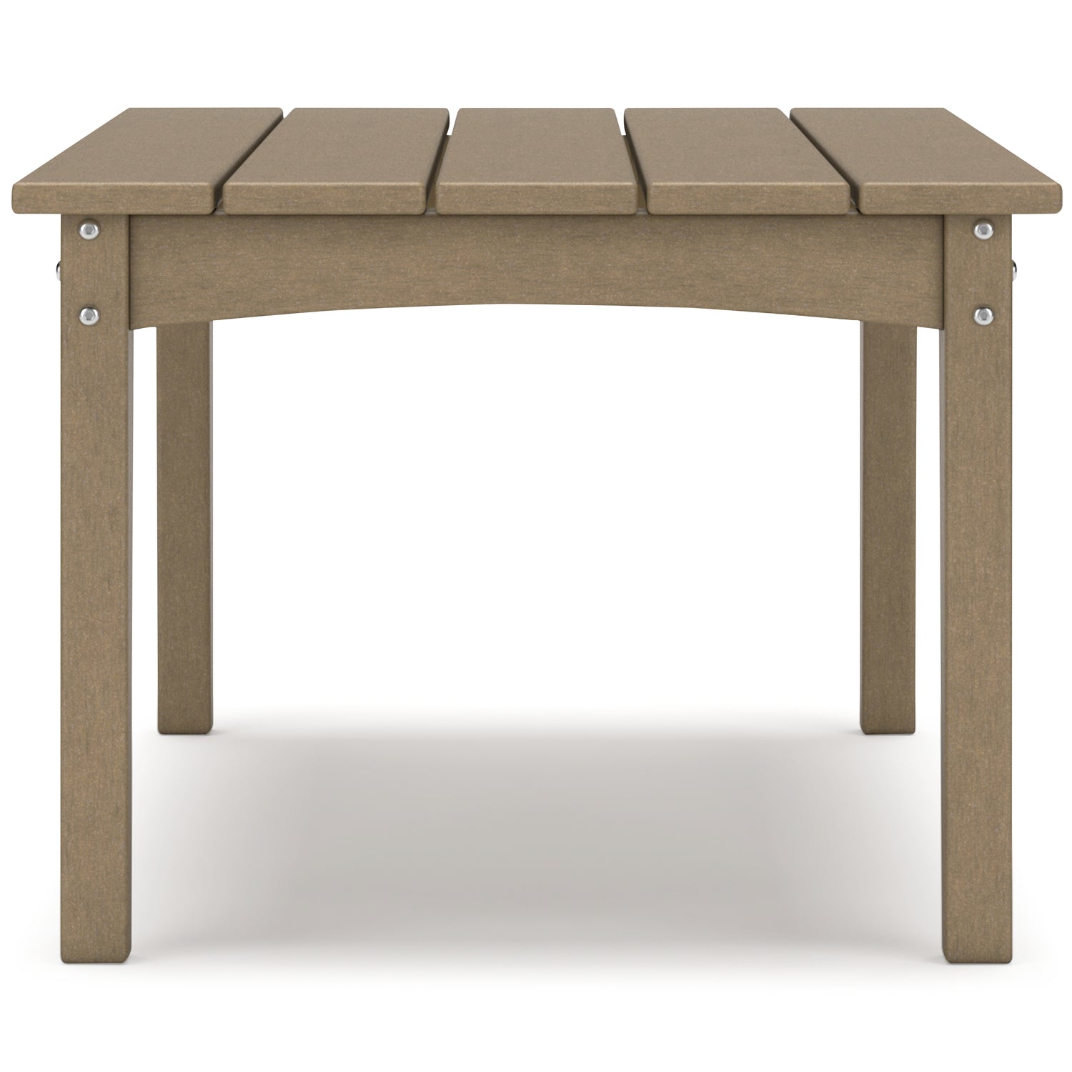 Drift into outdoor entertainment bliss with this coffee table. Dressed in an inviting driftwood hue with a classic feel, it weathers sunny summer days and cozy winter nights with durable MEGA TUFF™ HDPE material. When it comes to form and function, the table's rain-shedding slatted design simply goes with the flow. Use it to hold outdoor decor, drinks or snacks.