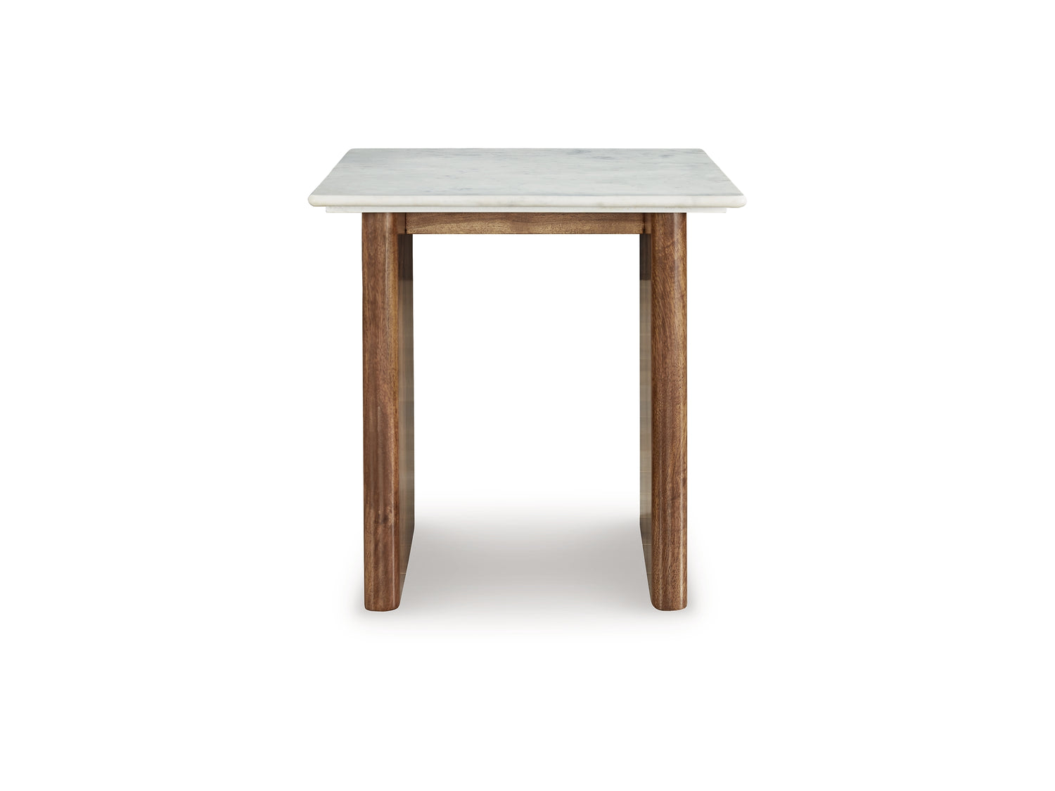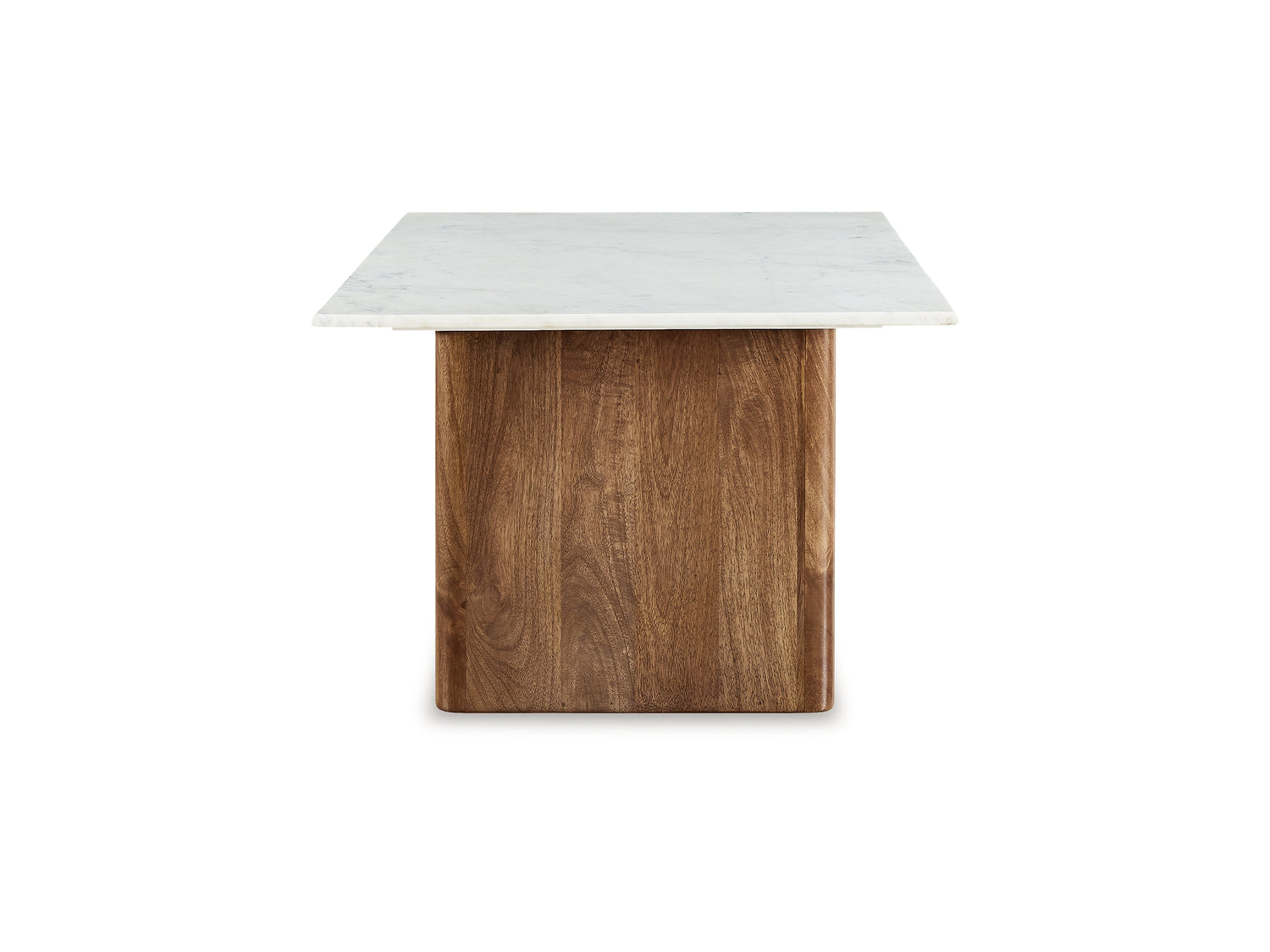 Series Features: Natural Contemporary design. Made with solid Mango wood base and natural marble top. Natural light brown finish and white marble.