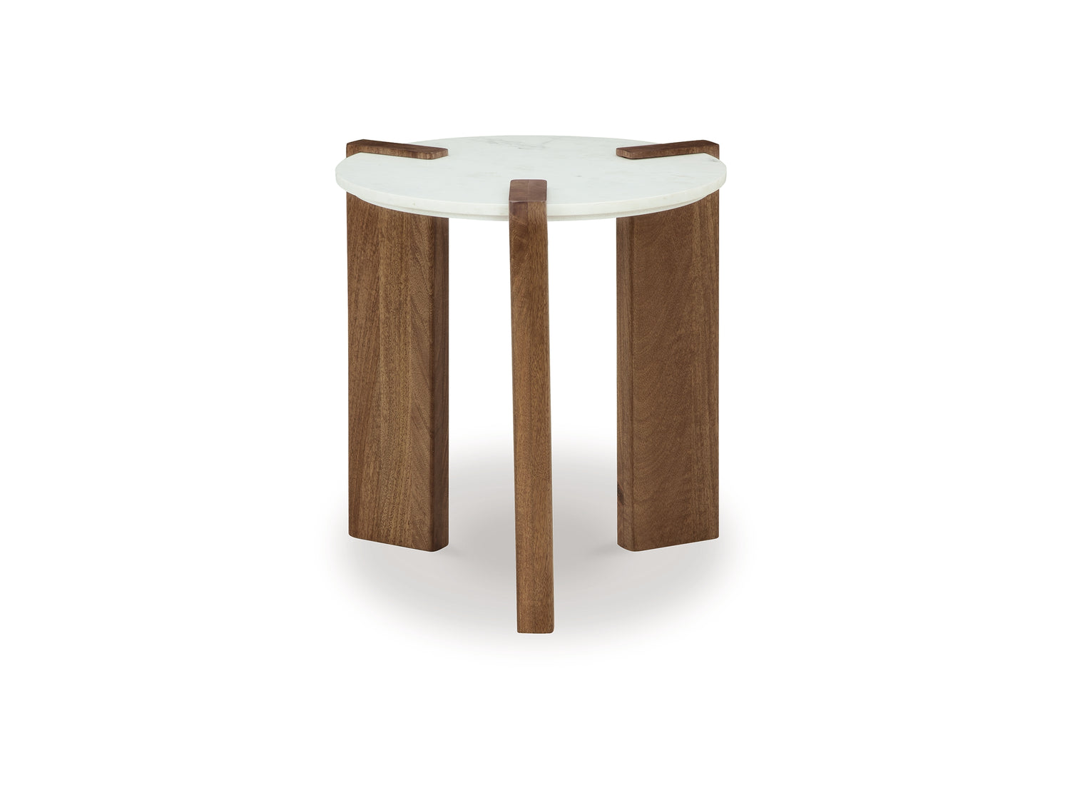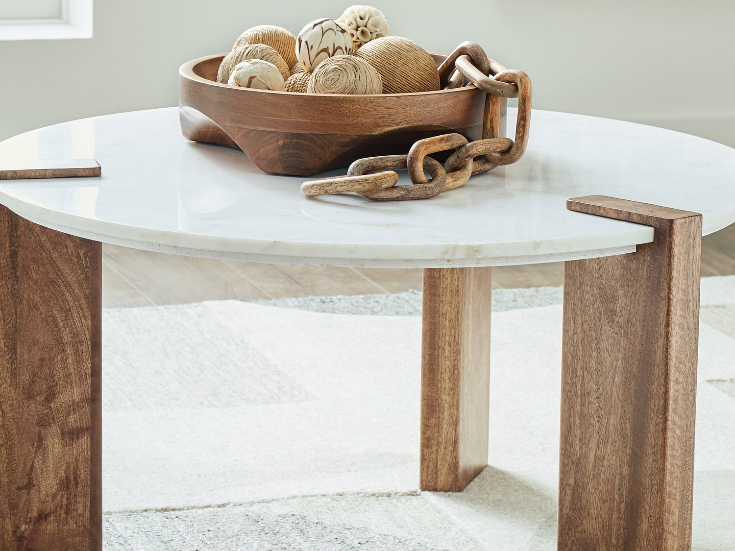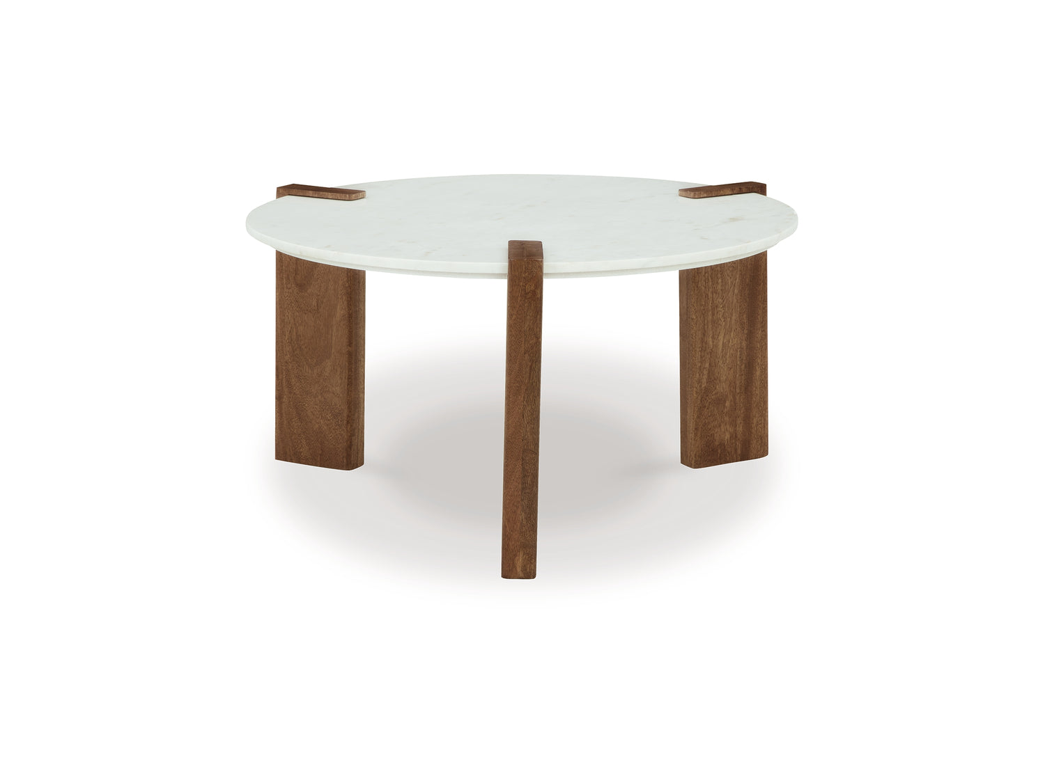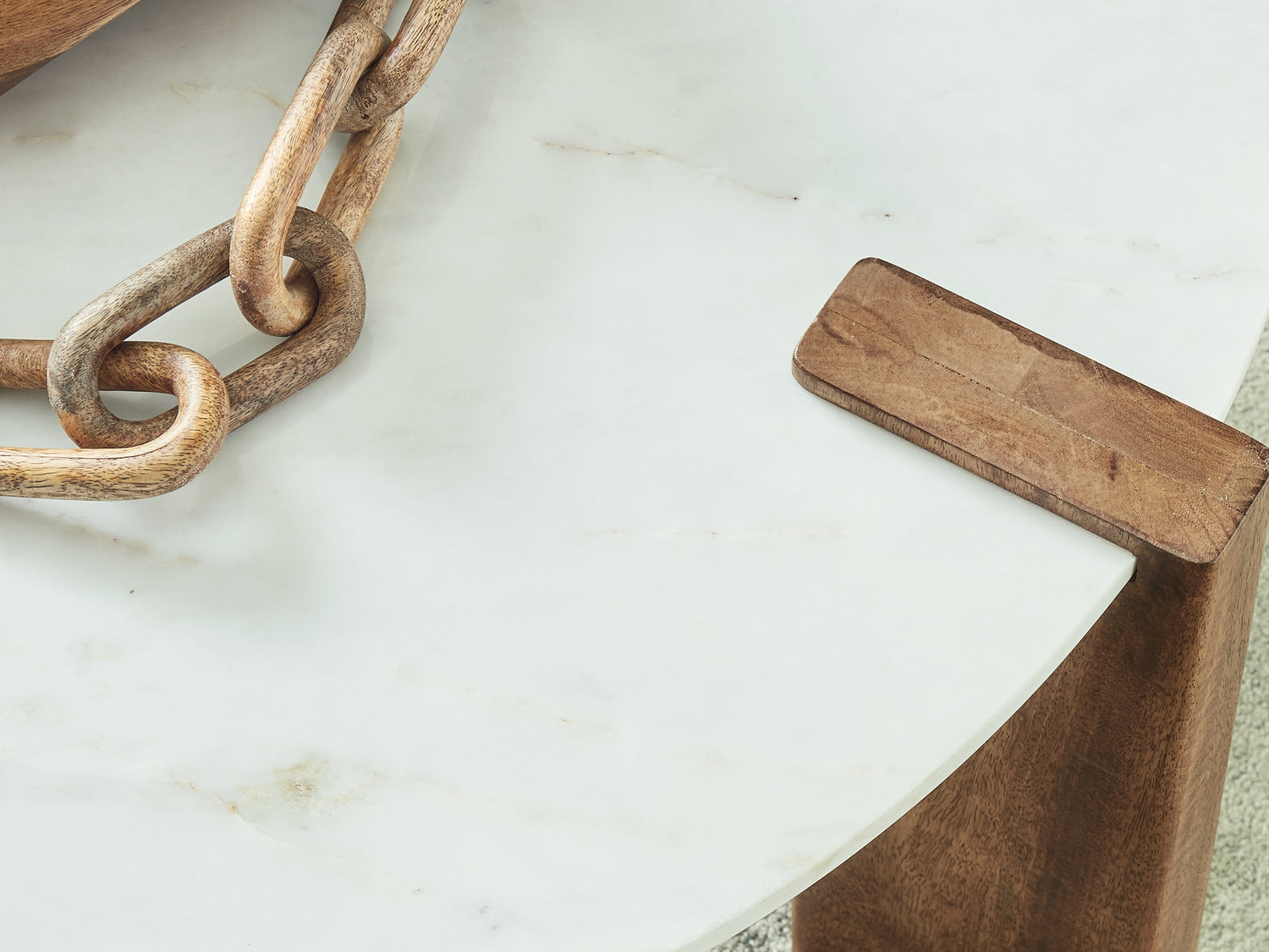 Series Features: Natural Contemporary design. Made with solid Mango wood base and natural marble top. Natural light brown finish and white marble.