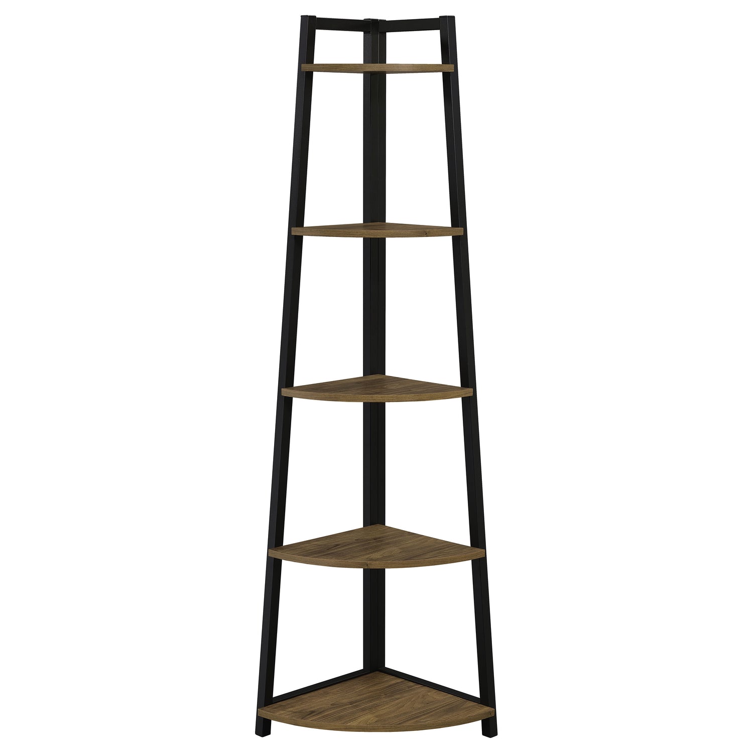 Jacksonville 5-Tier Corner Bookcase Aged Walnut