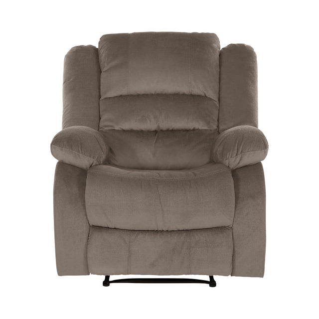 The jarita collection produces a style that is ideal for the relaxed atmosphere of your living area because to its traditional and transitional styling. the reclining chair comes in a chocolate microfiber finish, and it features padded seats, backs, and armrests. you can go from being sitting to being in a prone posture in a simple move by pulling on the handle of the manual mechanism that reclines the chair.