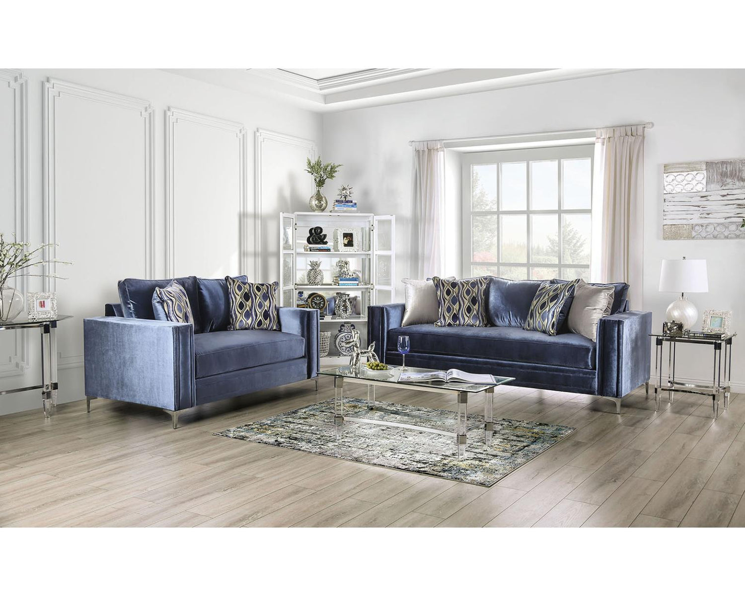 - Item Name: Jodie Satin Blue/Silver Sofa Set