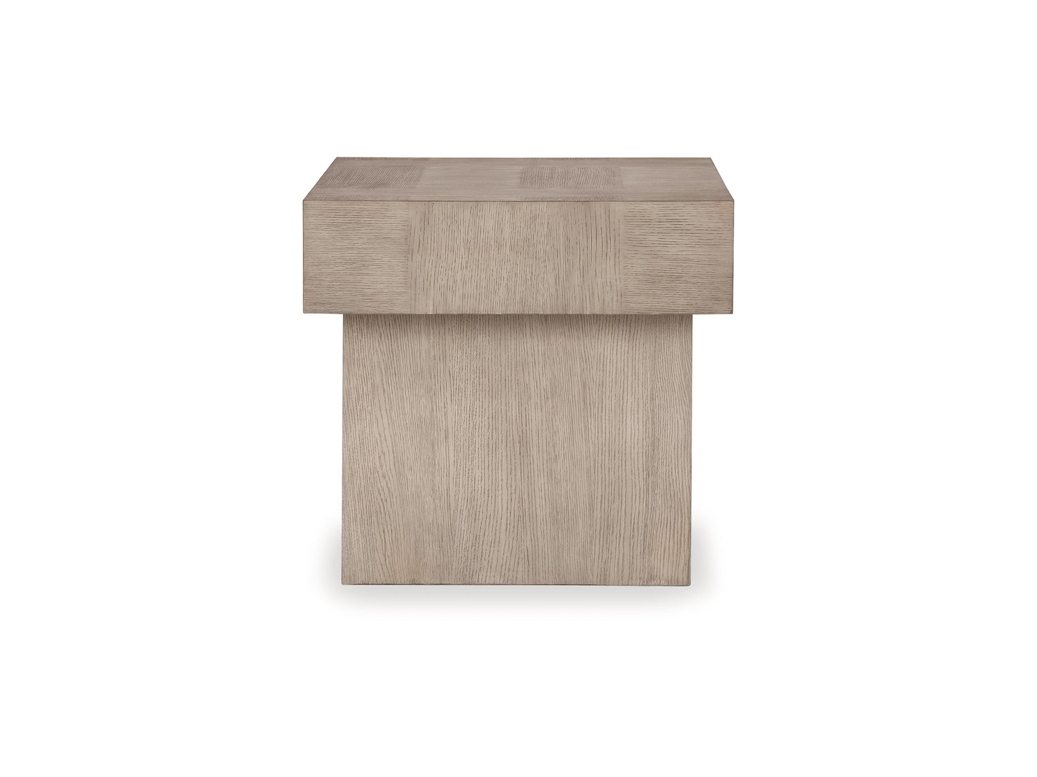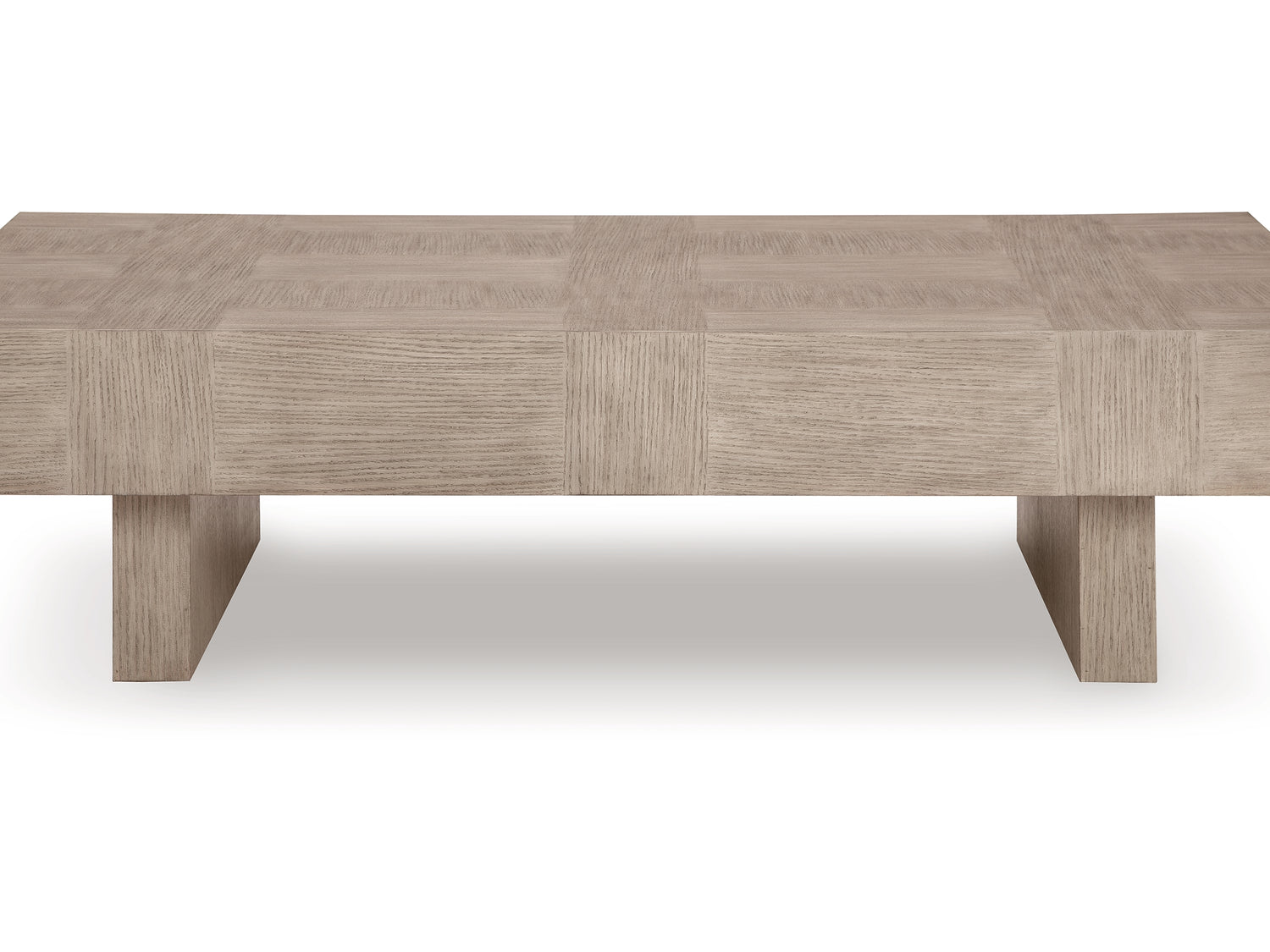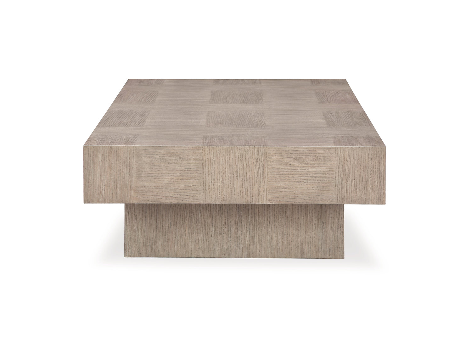 Series Features: Transitional styling. Made with hardwood solids, oak veneer and MDF substrate. Textural light gray finish offers a casual modern look. T922-1 cocktail table features features a fancy face top with wire-brushed Oak veneer pattern and double plinth base.