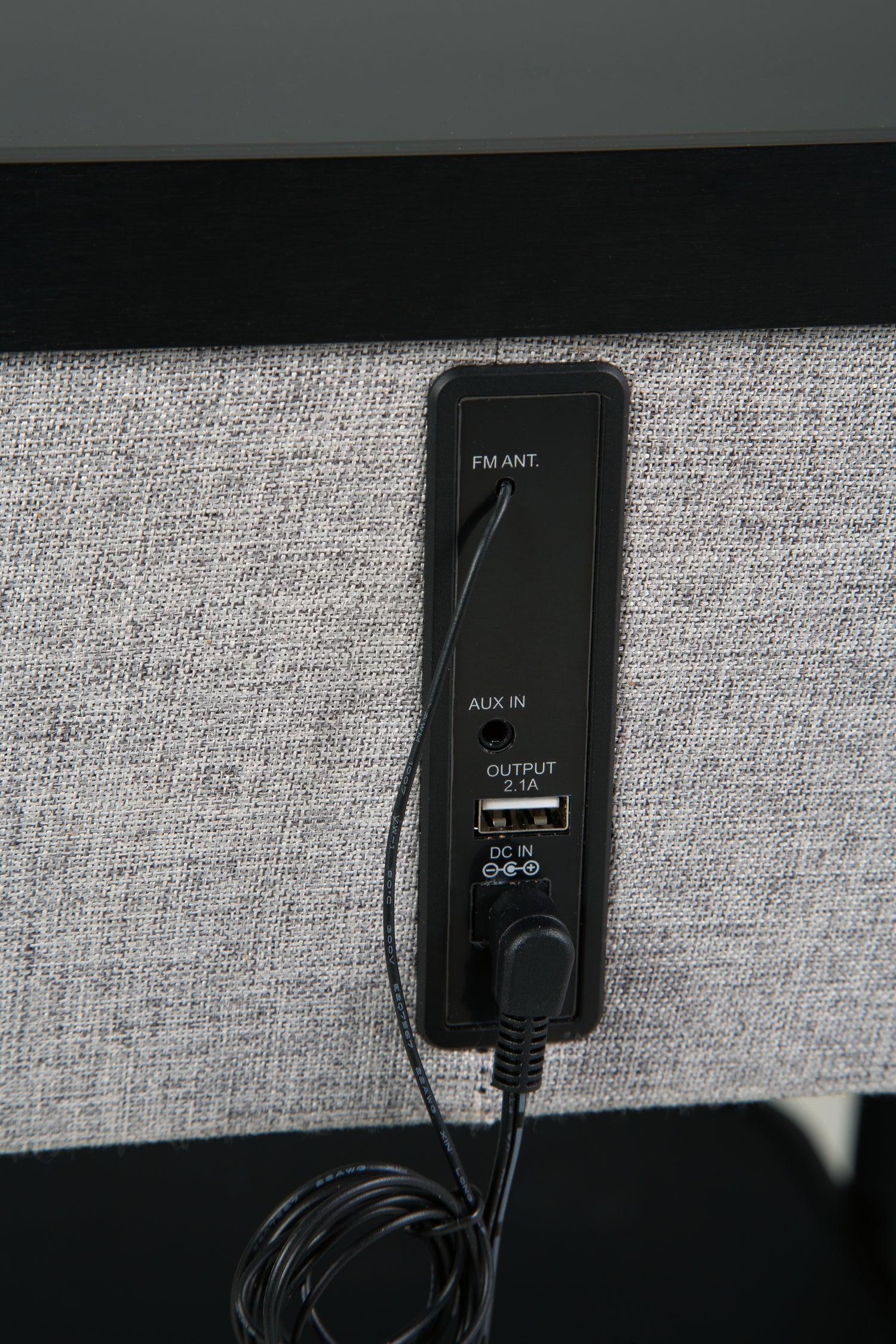 If you're a fan of sleek, space-saving design, this accent table will be music to your ears. In tune with your lifestyle, it features an integrated speaker that connects wirelessly to your favorite songs. Its glass top (with wireless charging and touch-button controls) harmonizes perfectly with neutral gray fabric on the sides. This contemporary table hits all the right notes for form and functionality.