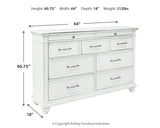 Give your retreat vintage charm and valuable drawer storage with this dresser. In a beautifully distressed whitewash finish, you'll love putting it all away in casual style. Seven full-sized drawers and two accessory top drawers will easily accommodate your needs. Generously scaled moulding from top to bottom, along with bun feet and drawer handles with a transitional aesthetic, give this dresser character—evoking the feel of a quaint cottage escape.
