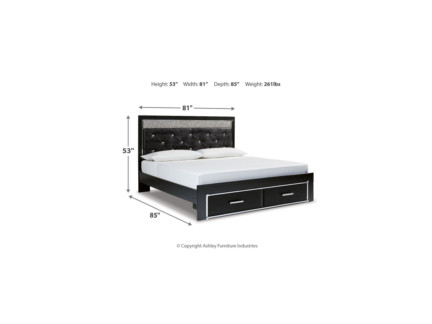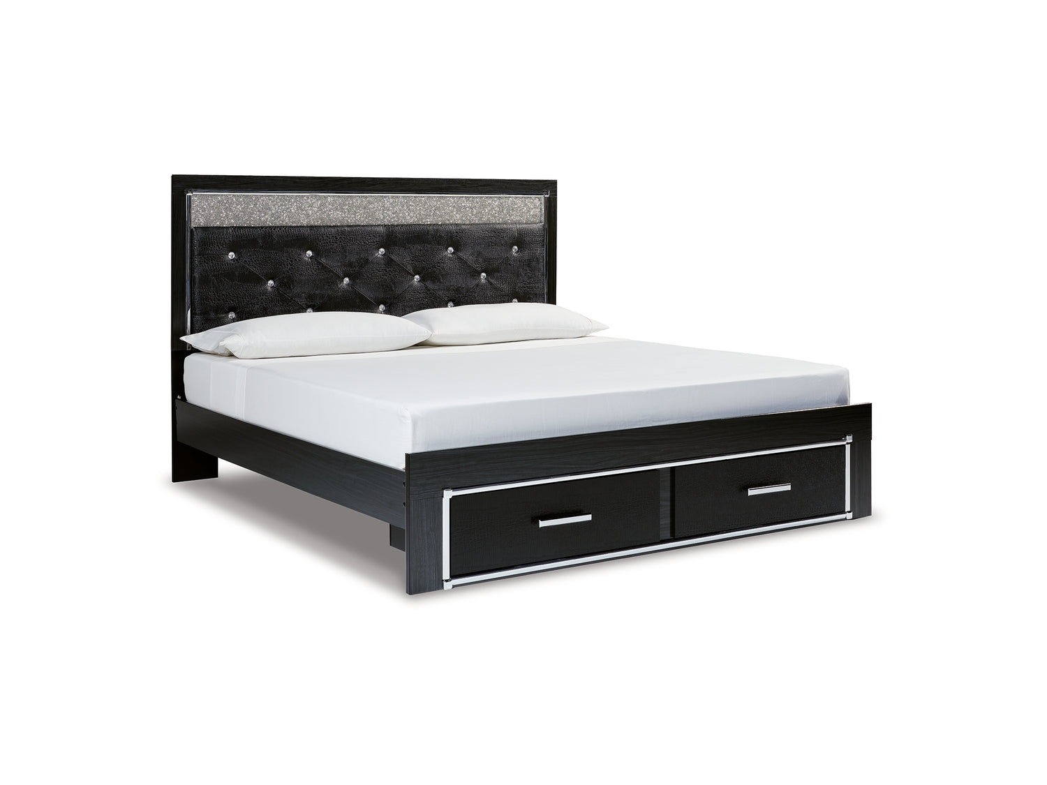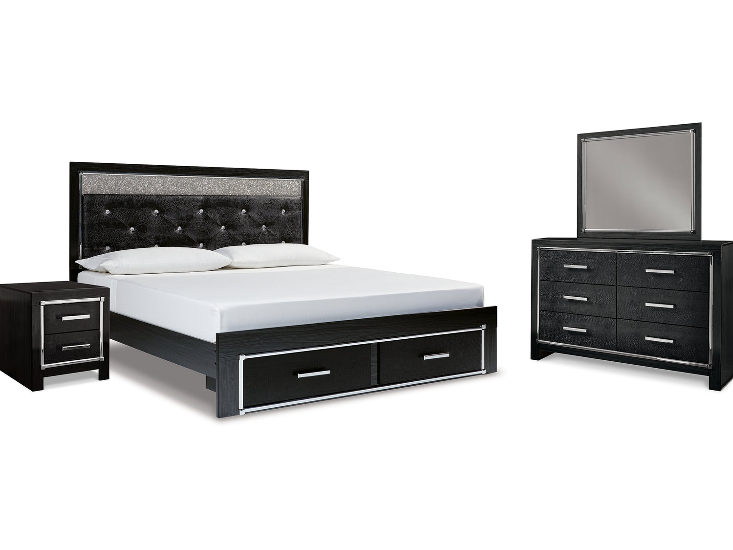 Kaydell Black King Panel Storage Bed, Dresser, Mirror And Nightstand