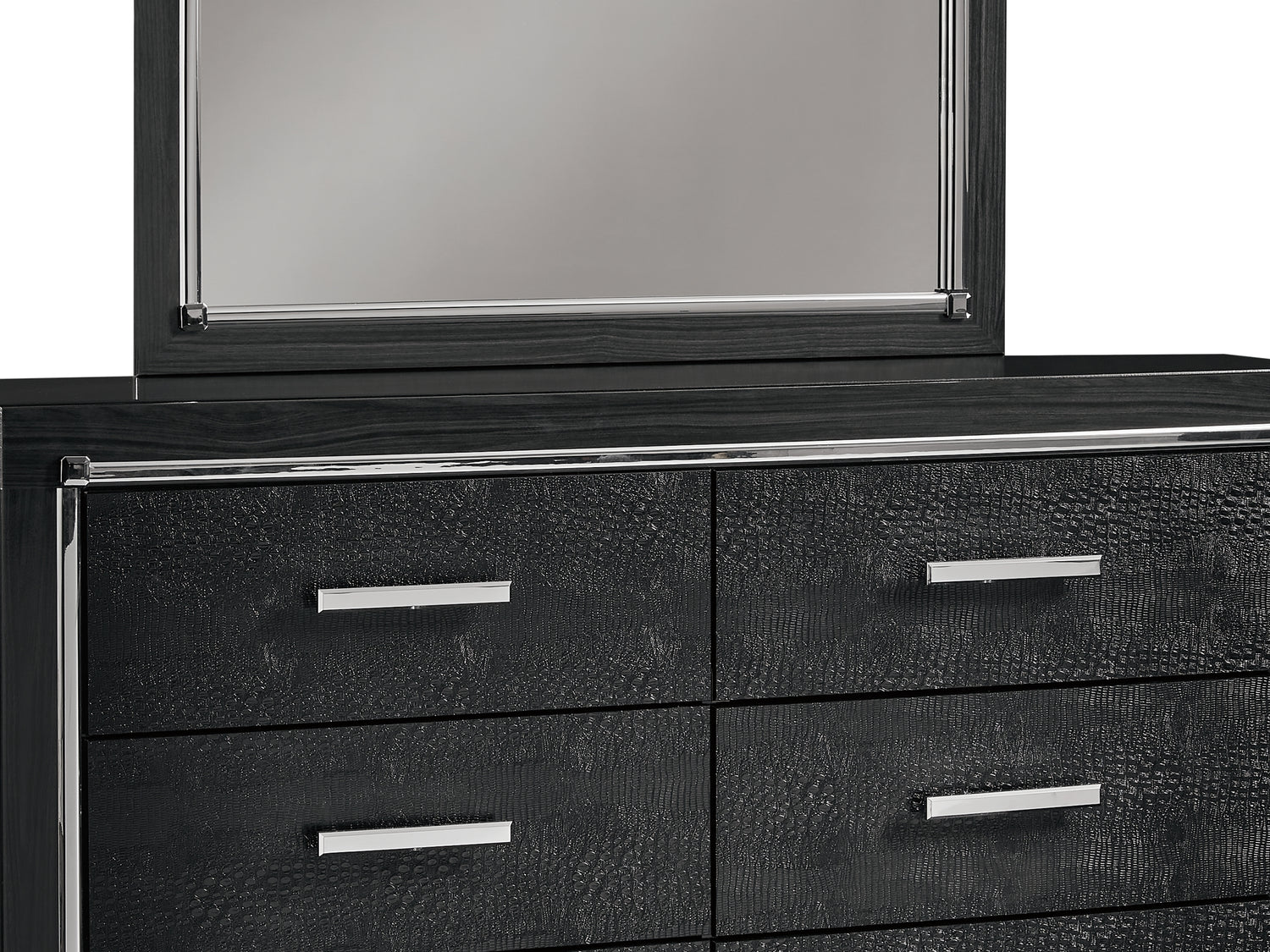 Kaydell Black Queen Upholstered Panel Bed, Dresser, Mirror And Nightstand