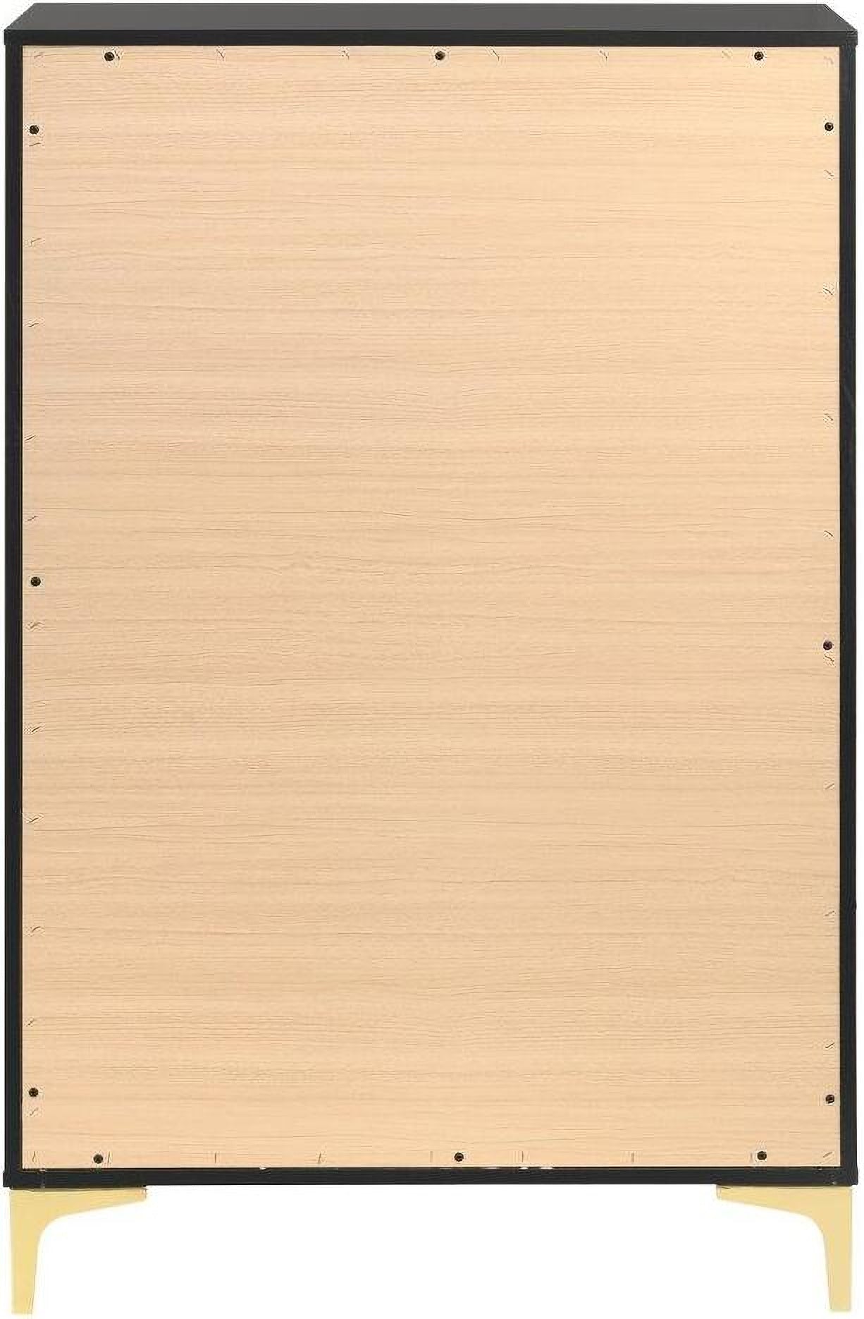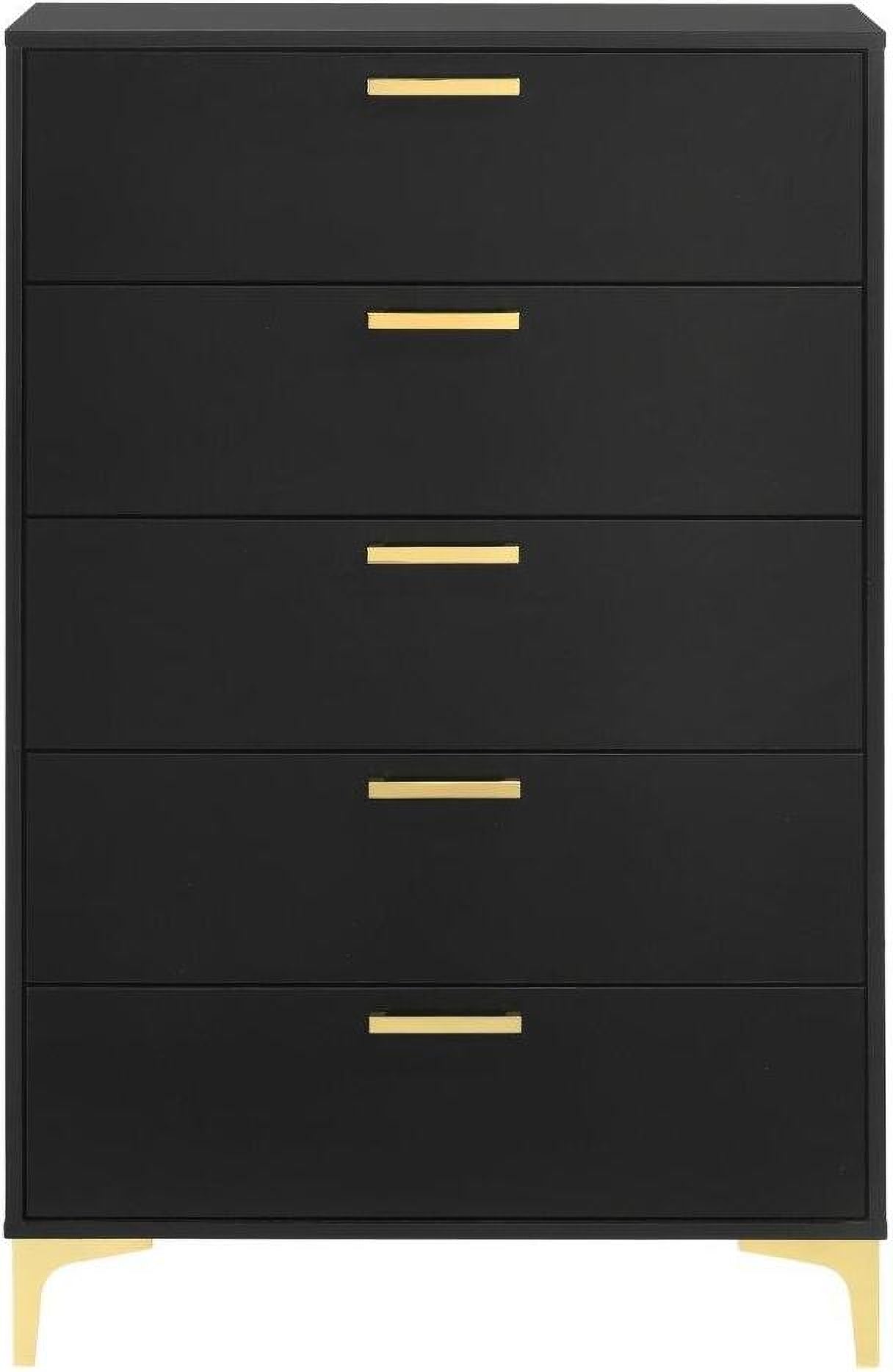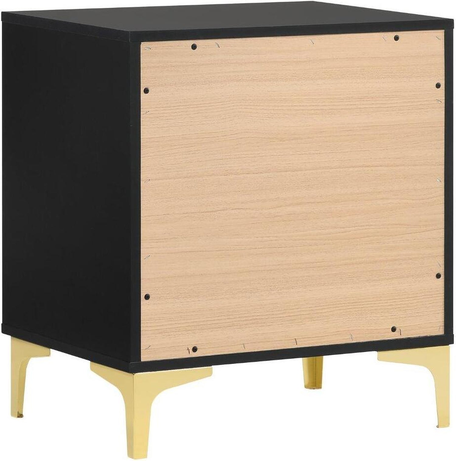 Kendall Black And Gold Tufted Upholstered Panel Bedroom Set - Queen / 4 Piece Set is backordered and will ship as soon as it is back in stock.
