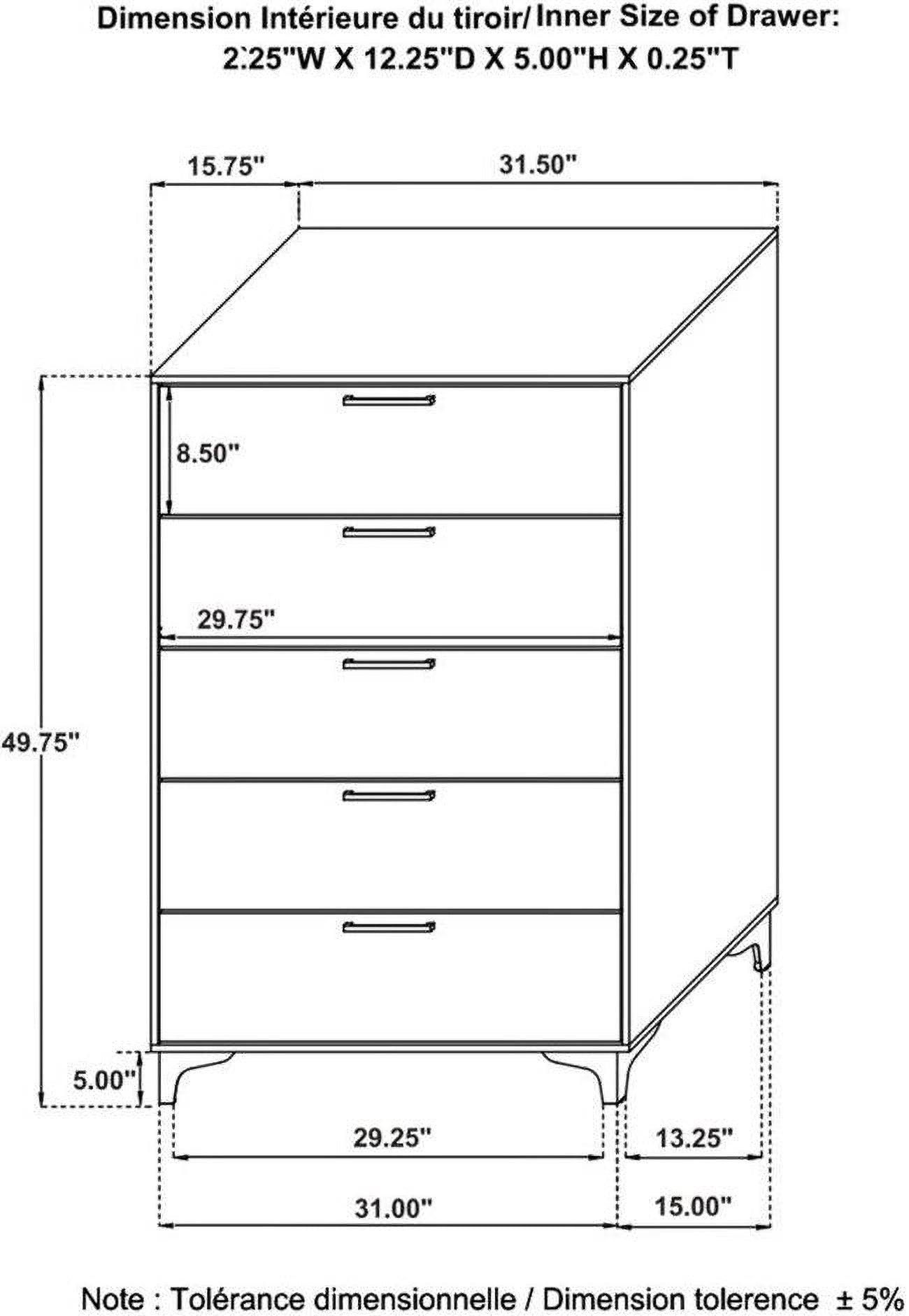 - Chest: 31.5"W x 15.75"D x 49.75"H