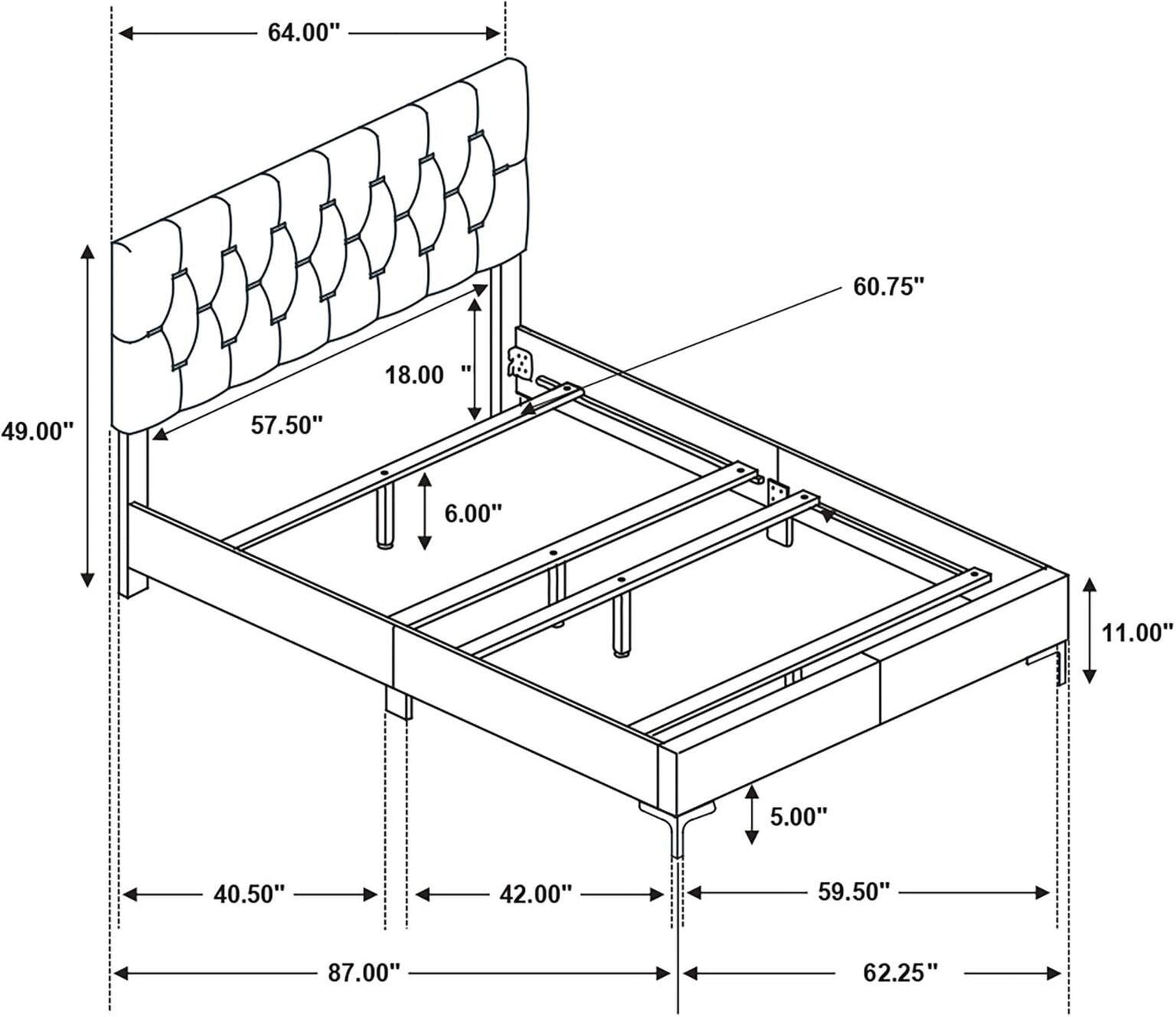 - Queen Bed: 64.25"W x 87"D x 49.25"H