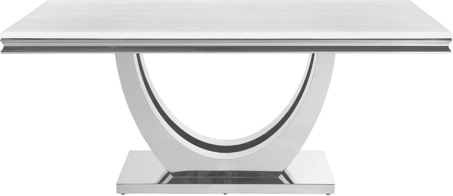 - A white faux marble table top keeps a classic and clean expression to your dining space