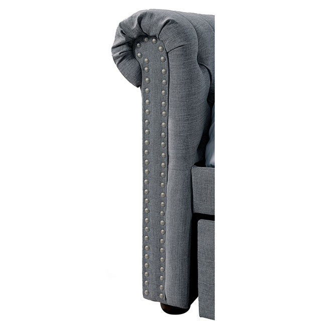 - Button-tufted w, Rolled Arms & Nailhead Trim