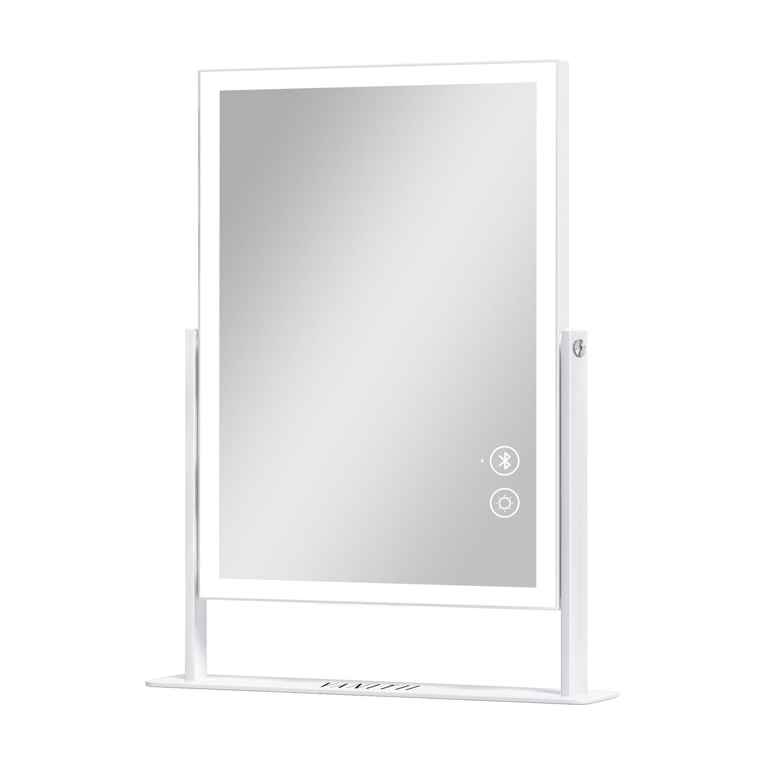 Introducing this chic vanity mirror! Featuring an LED strip, it provides 3 light temperatures controlled by smart touch. With 360° free rotation and a detachable 10X magnification mirror, it ensures detailed makeup application. Blending style and utility, it’s ideal for elevating daily beauty rituals.