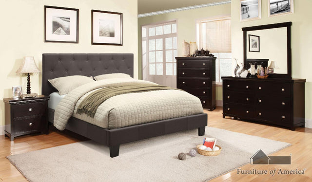 Create a simple yet inviting atmosphere in your bedroom with this transitional bedroom set. The bed is fully upholstered fabric and available in two colors: gray or ivory. A padded, button-tufted headboard adds elegance and warmth to this beautiful set.