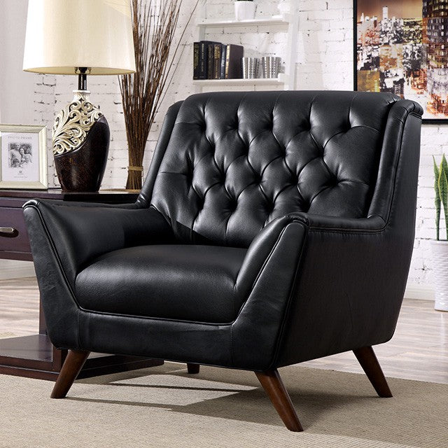 Ultra stylish featuring a button tufted design with a slightly reclined back support, this sofa set is both contemporary and functional.
