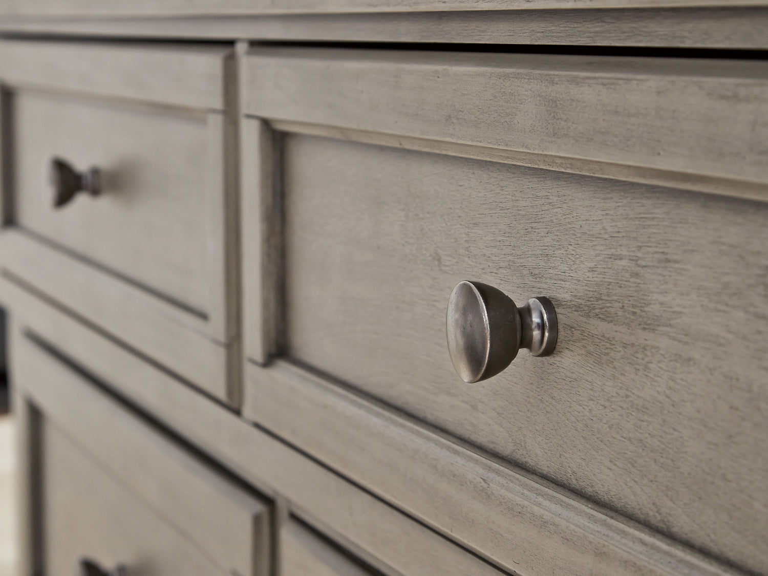 Series Features: Made with select Birch veneers and hardwood solids. Burnished light gray finish. Drawers feature a silver-tone patina color knob and back plate. Dovetail drawer construction. Drawer interior with color finish. Ball-bearing drawer glide. Felt drawer bottoms on select drawers. Beveled mirror. Both the sleigh headboards (77/78) or panel headboards (57/58) can use either storage footboards (74/98 and 76/99) and panel footboards (54/96 and 56/97). Choose from a timeless storage sleigh bed design, offered in twin or full size. Special features include a hidden jewelry tray in the center drawer of the dresser, and a concealed pull-out tray in the -92 nightstand.