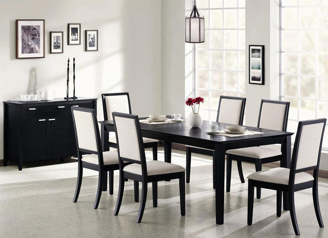 - Sleek contemporary side chairs feature cream upholstered seat and back cushions for an elegant look