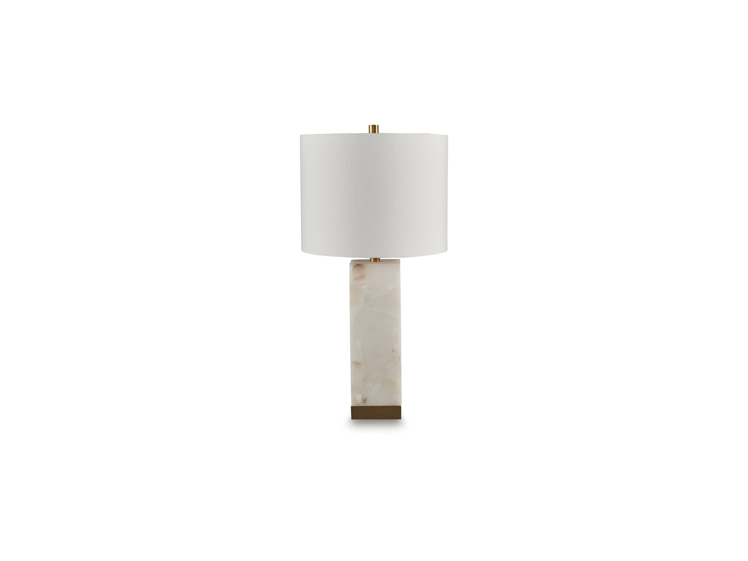 Series Features: Alabaster and resin table lamp with gold finished metal accent. Drum shade. 4-way switch. (1) E26 socket, type A bulb recommended - 150 watts max and 1 watt LED night-light. Due do the use of natural materials, some variations may occur.