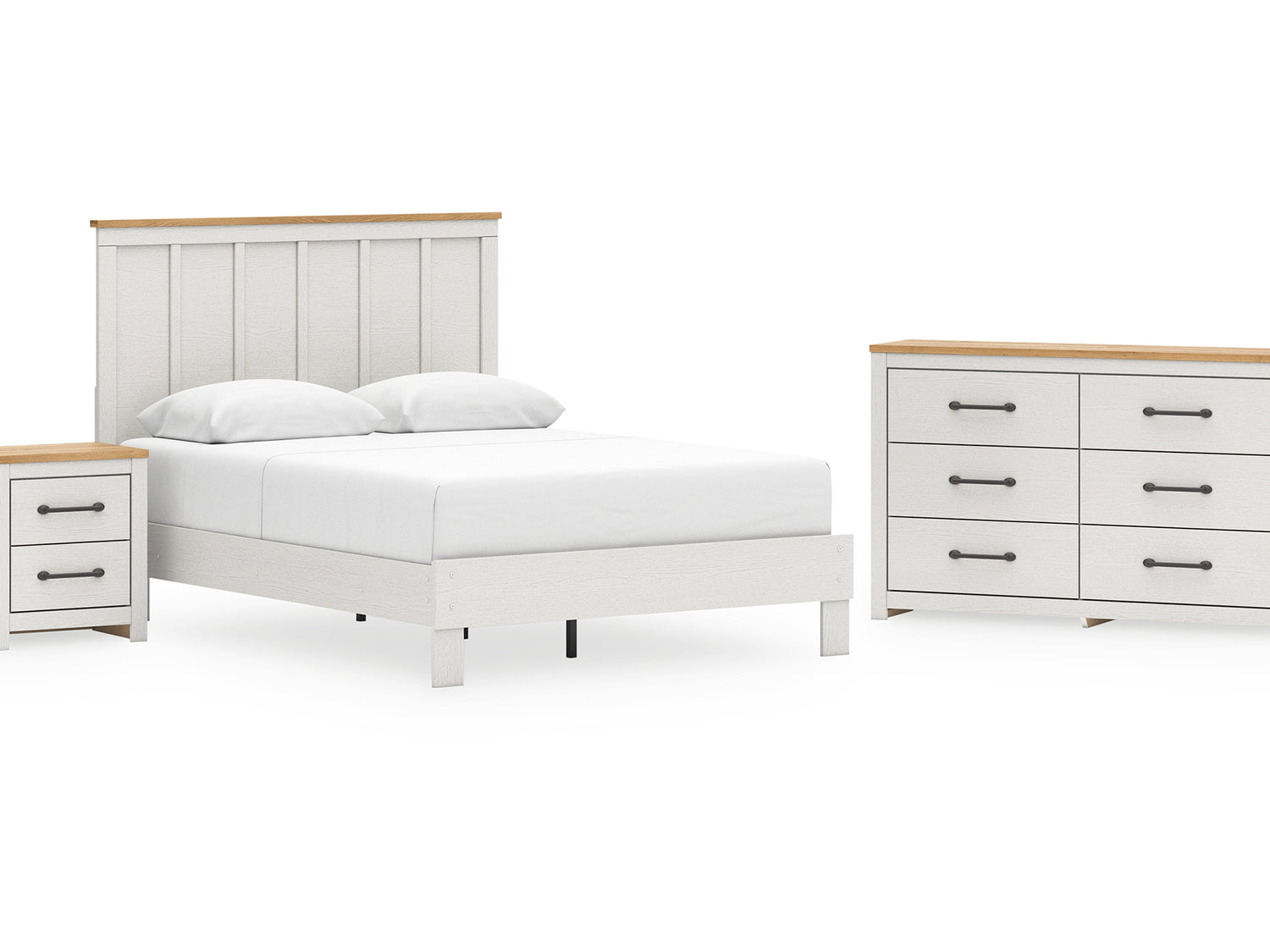 Linnocreek White/Warm Brown Queen Panel Bed, Dresser And Nightstand