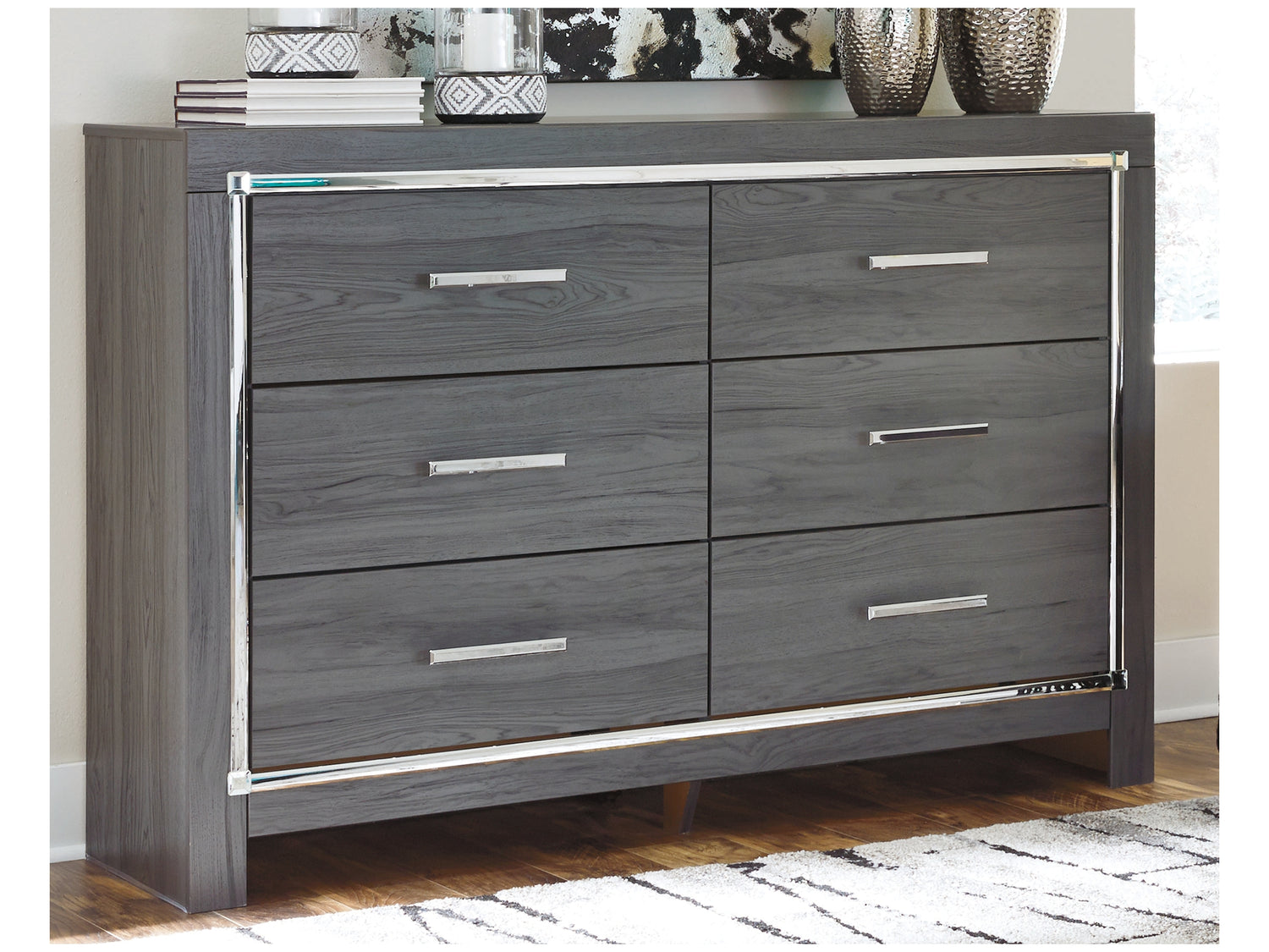 Lodanna Gray King Upholstered Panel Bed, Dresser And Nightstand is backordered and will ship as soon as it is back in stock.