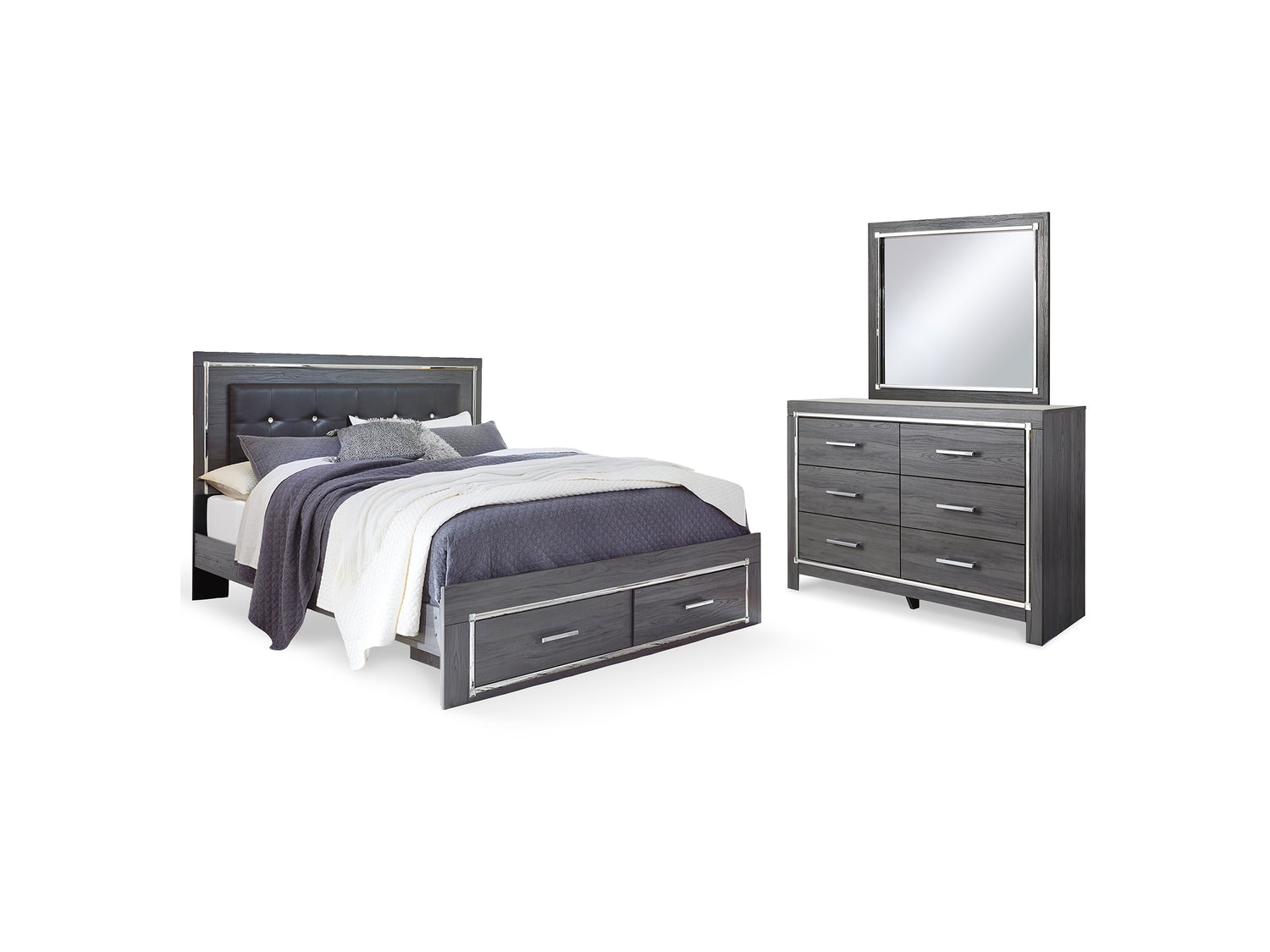 Lodanna Gray King Upholstered Storage Bed, Dresser And Mirror