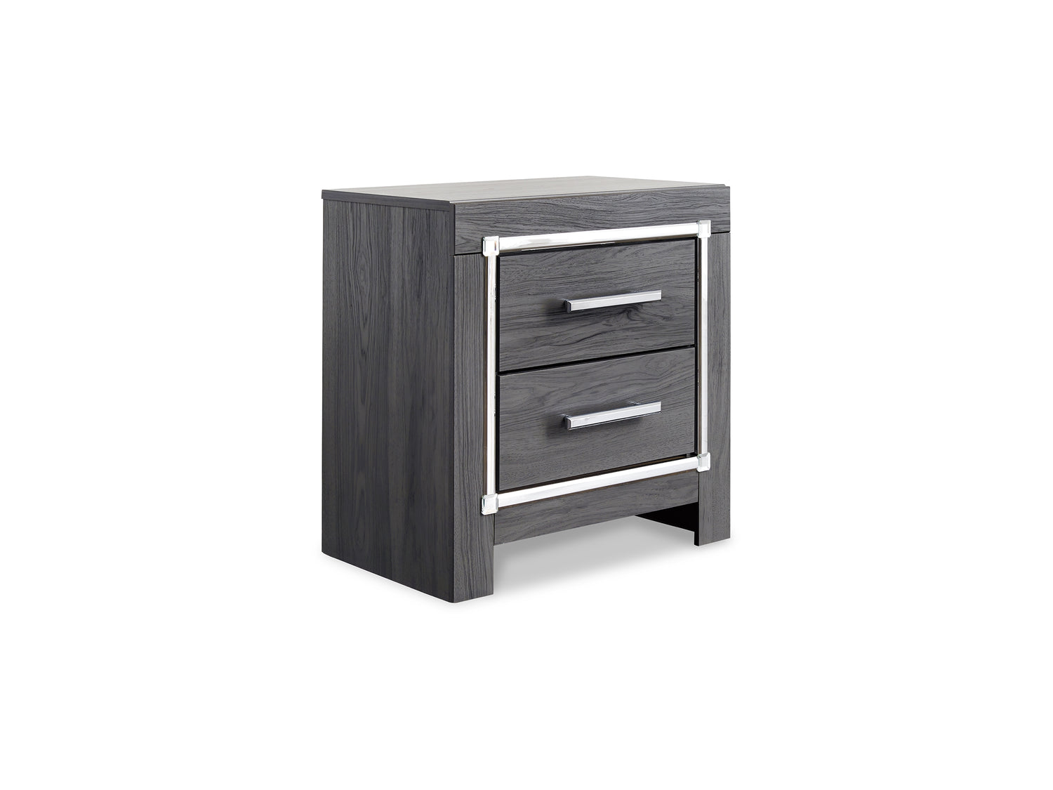 Series Features: Modern gray finish with replicated wood grain. Cases and bed are accented with faceted chrome details. Large scaled chrome handle with faceted details. Headboards are accented with LED lighting and include a remote for color and brightness options. Included remote holder discretely keeps light remote accessible. Headboards are accented with faux crystal tufted black upholstery. Side roller glides for smooth operating drawers. Drawer interiors are lined with a faux linen laminate for a clean finished look. Both king, queen and full panel beds have a panel footboard (84,54,56) and storage footboard option (84S,54S,56S). Full (87), Queen (57) and King (58) headboards can attach to a bolt-on metal bed B100-21, B100-31 or B100-66 respectively. Queen (57) upholstered panel headboard is capable of attaching a full sized metal bolt on bed frame. Both USB and wireless charging options are provided with the night stand. Queen (54,54S) and king (56,56S) can use -95 platform rails and require B100-13 (queen) or B100-14 (king) roll slats eliminating the need for a box spring. Safety is a top priority, clothing storage units are designed to meet the most current standard for stability, ASTM F 2057 (ASTM International). Drawers extend out to accommodate maximum access to drawer interior while maintaining safety.