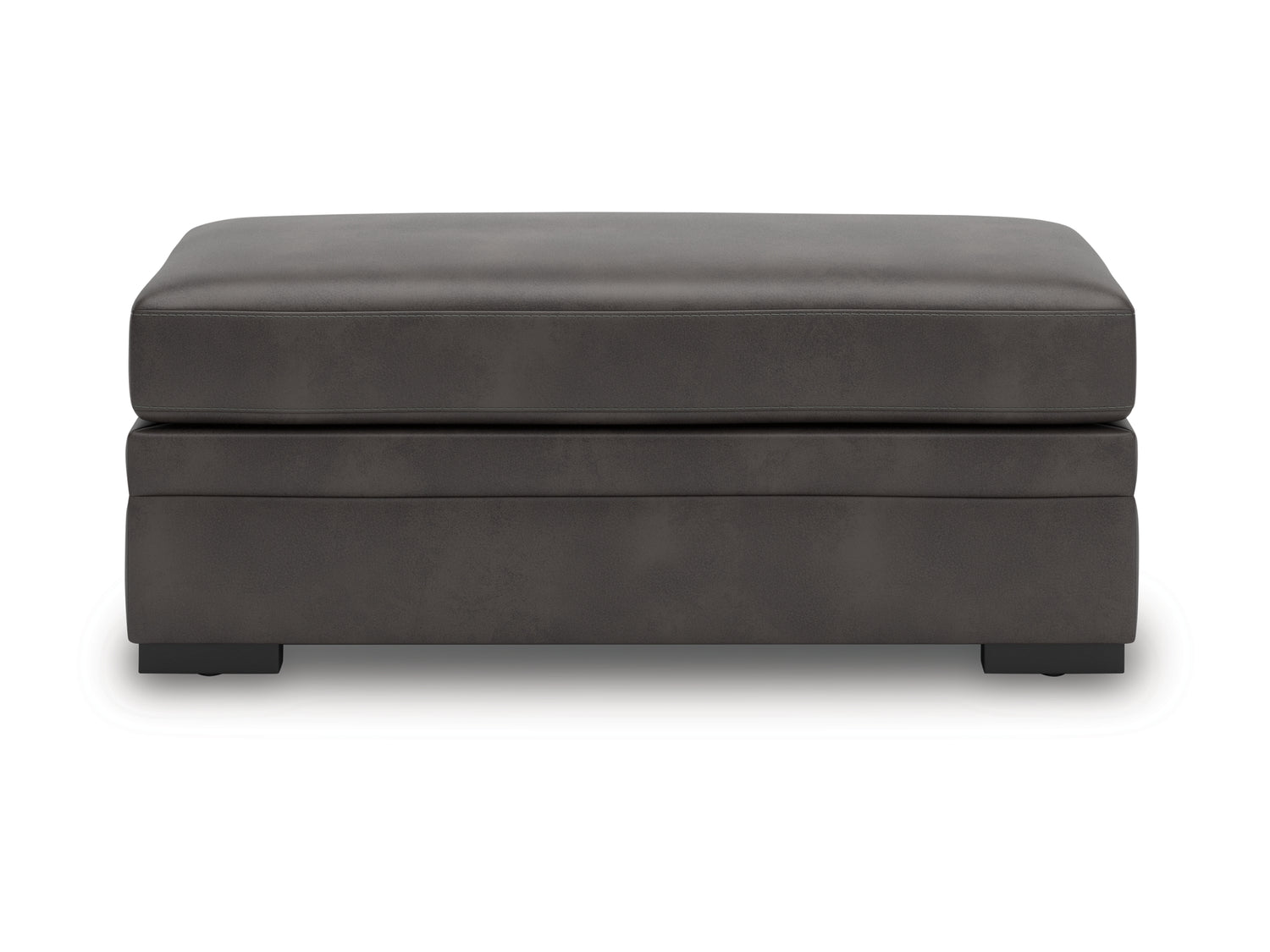 Series Features: Hot Selling double chaise sectional in faux leather. New plush, suede-soft microfiber in a charcoal color. Loose non-reversible cushions and attached boxed backs with low-profile accent legs.