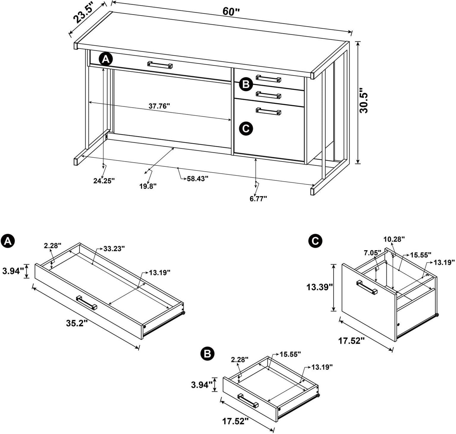 - Computer Desk: 60"W x 23.5"D x 30.5"H