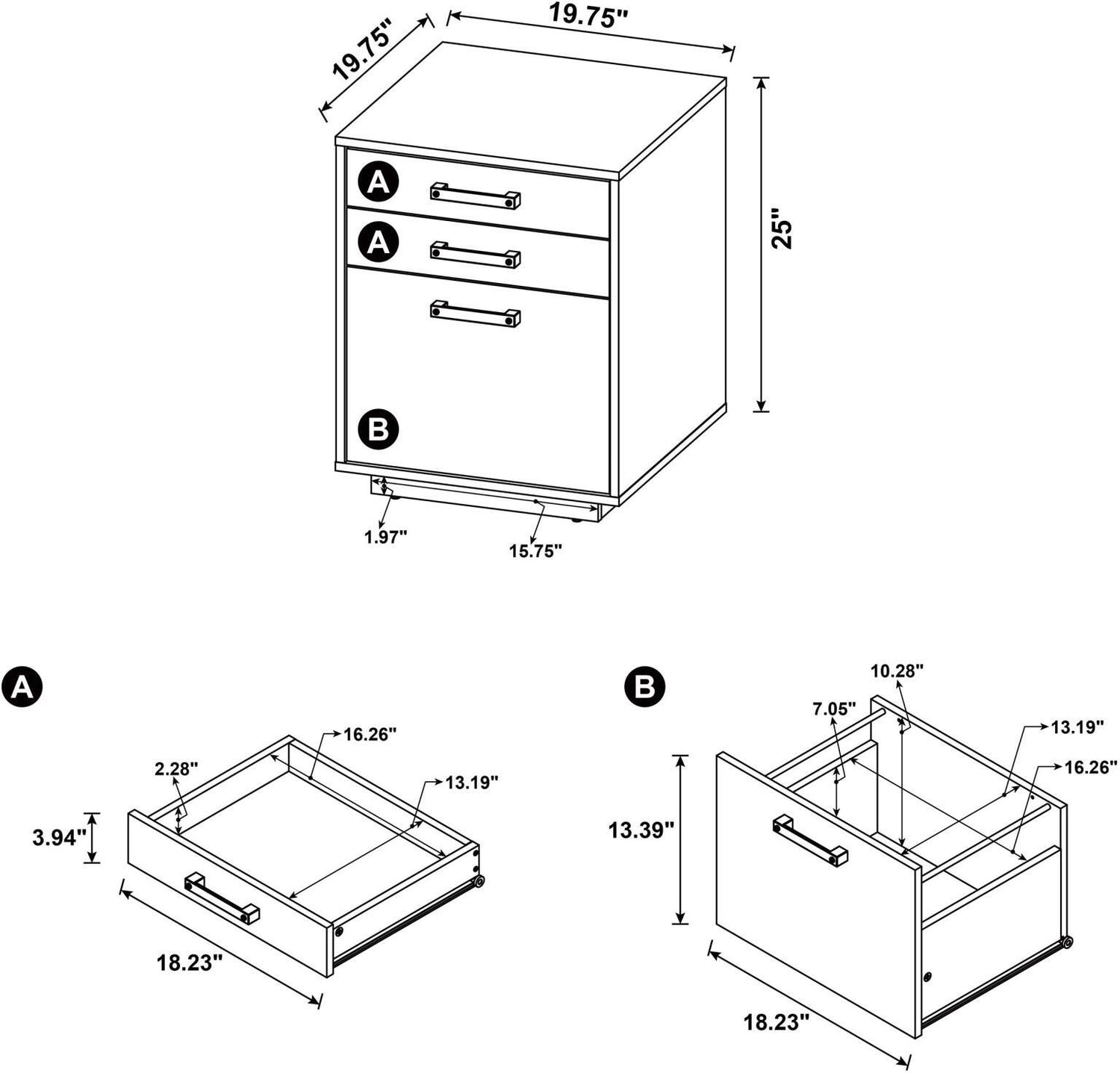 - File Cabinet: 19.75"W x 19.75"D x 25"H
