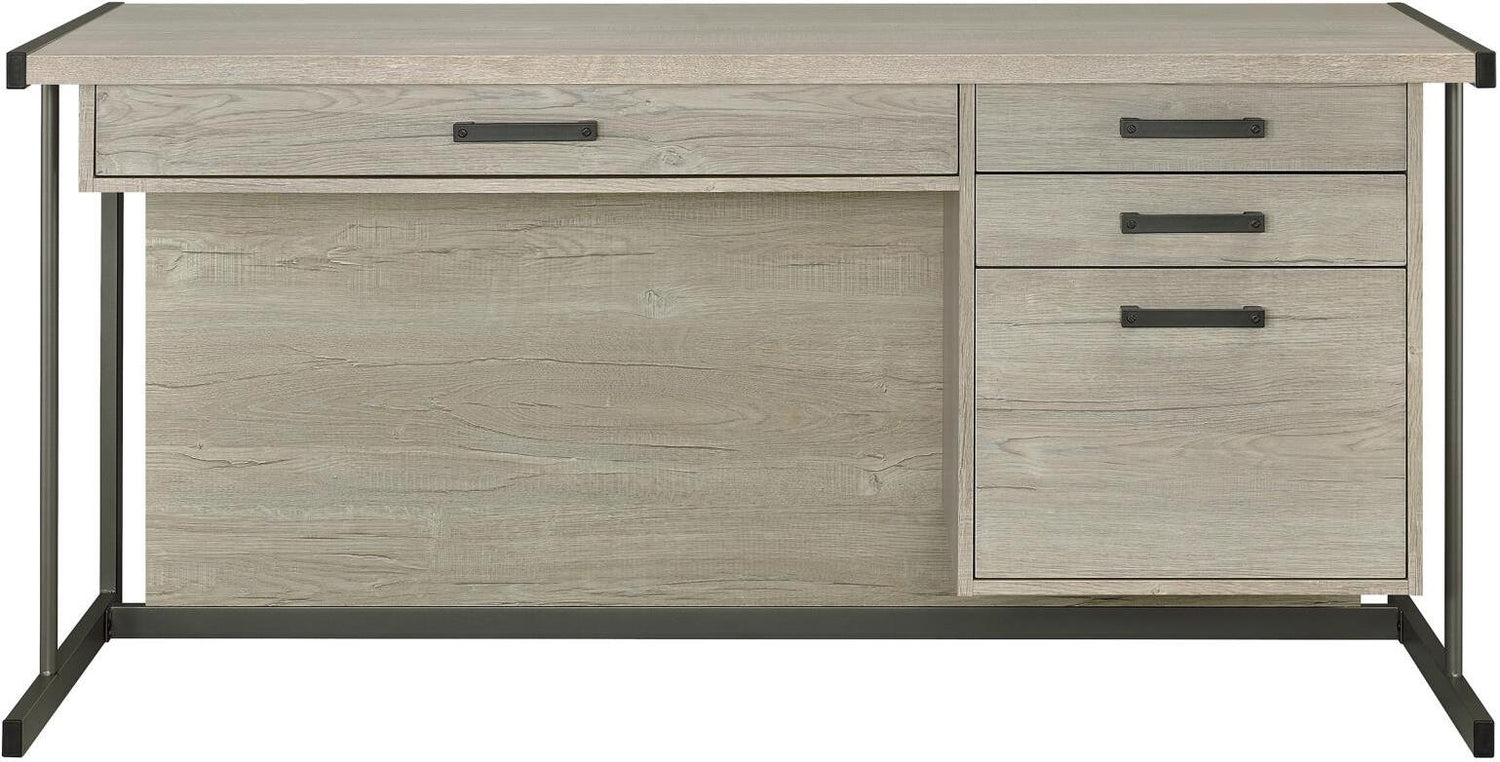 Loomis Whitewashed Grey And Gunmetal 4 Drawer Rectangular Home Office Set