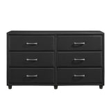 The inclusion of a long-lasting faux leather covering in black that is encased in the dresser of the lorenzi collection is one of the design elements that contributes to the collection's contemporary aesthetic. the hardware, which is finished in silver, creates a striking contrast with the faux leather covering. this collection will make a one-of-a-kind and fashionable addition to your bedroom, as it is scaled to fit the needs of urban living.