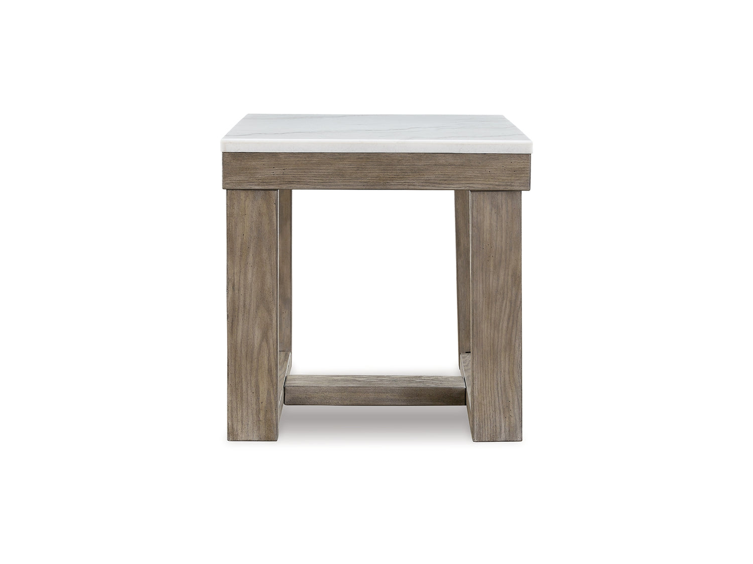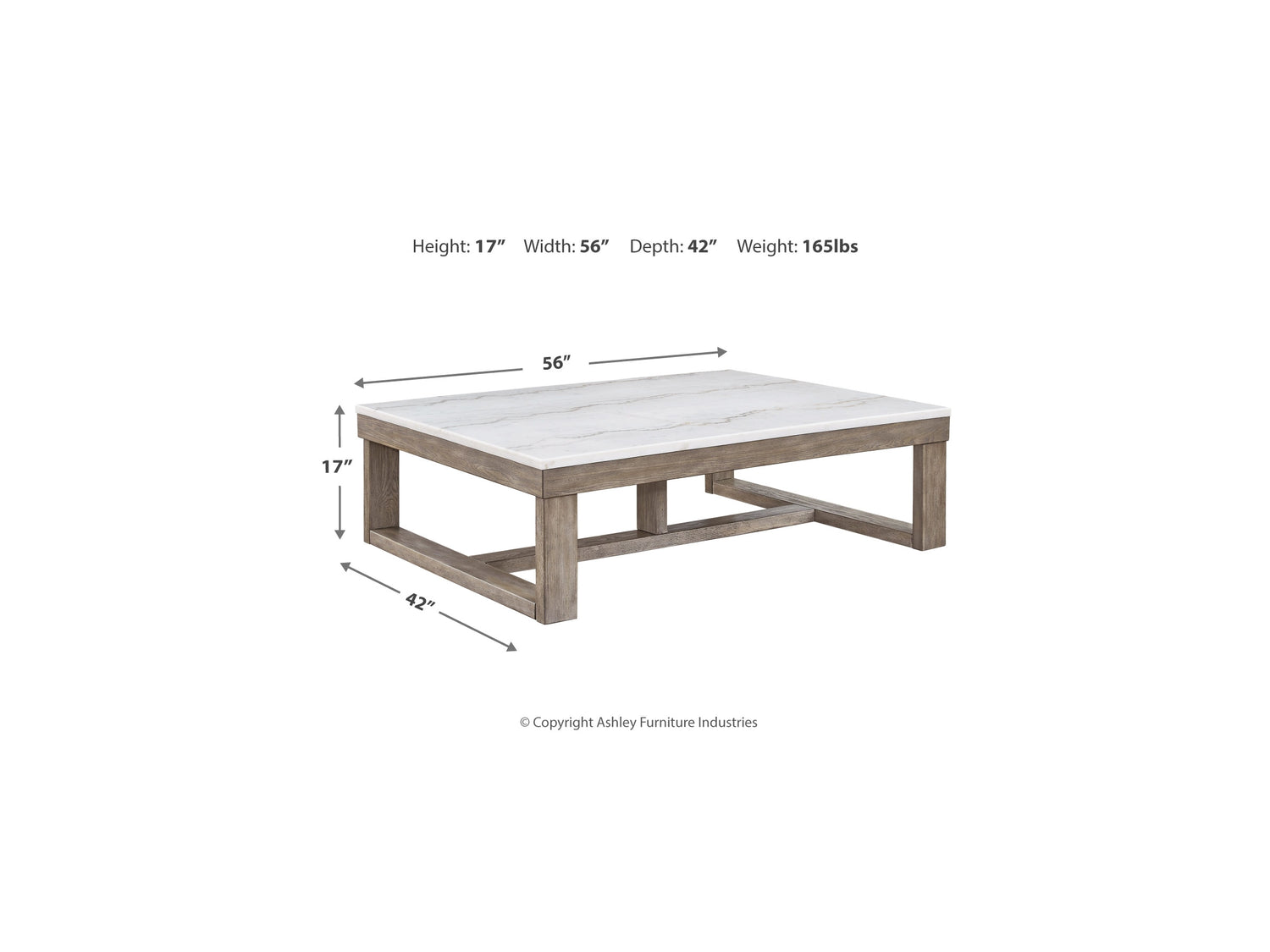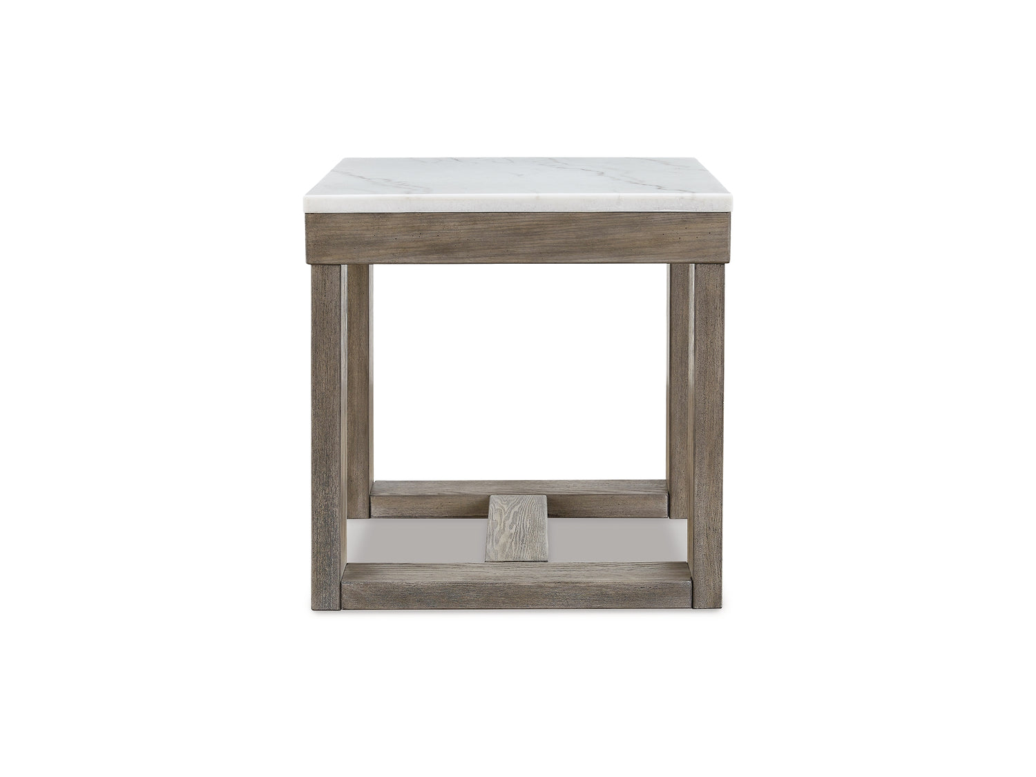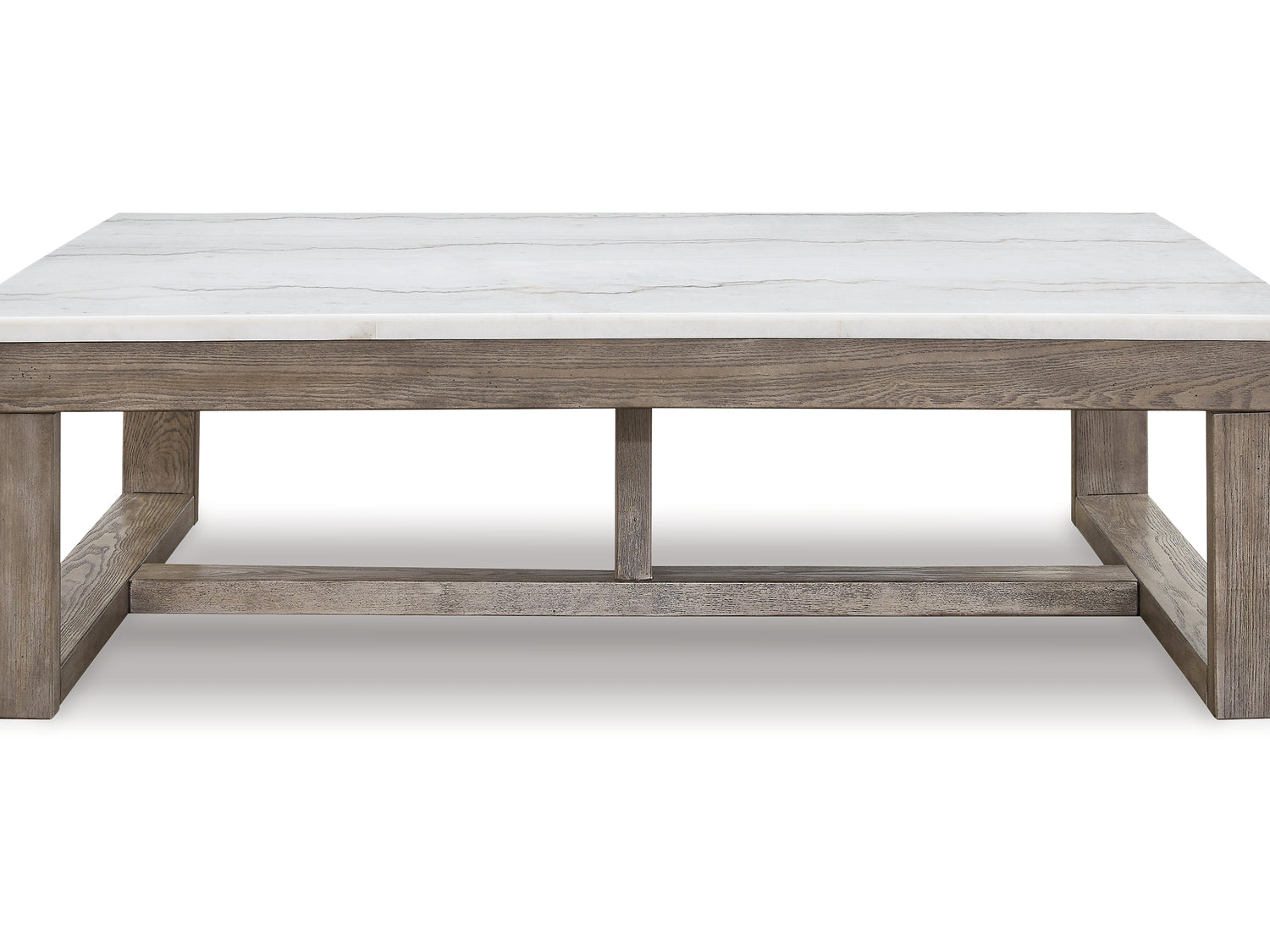 Series Features: Casual lifestyle design. Made with Oak veneer and MDF substrate with natural marble tops. Finished with a trend-right grayish brown wood-tone. The oversized cocktail table with its stylish yet simple design is ideal for large sectional family room settings. Matching end table.