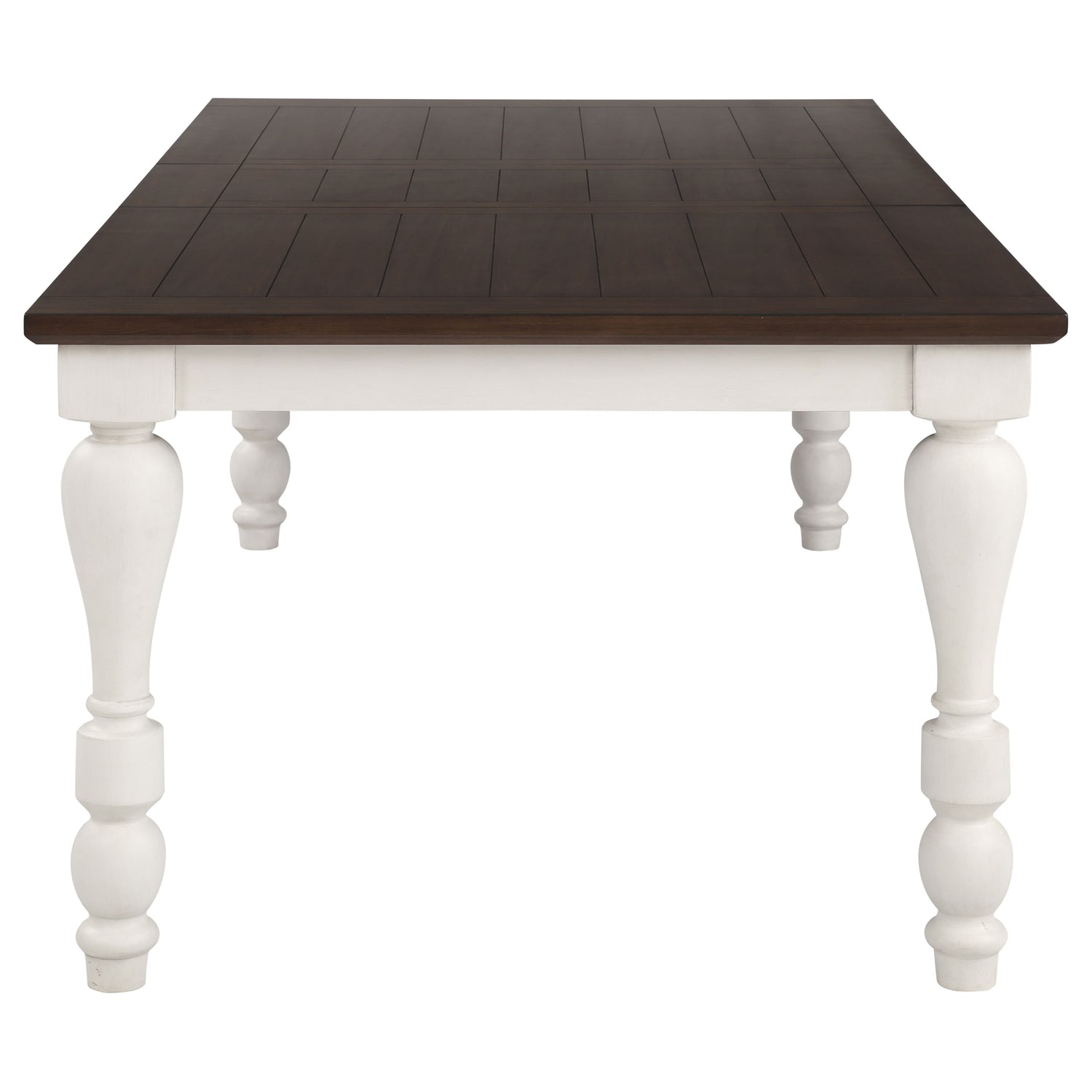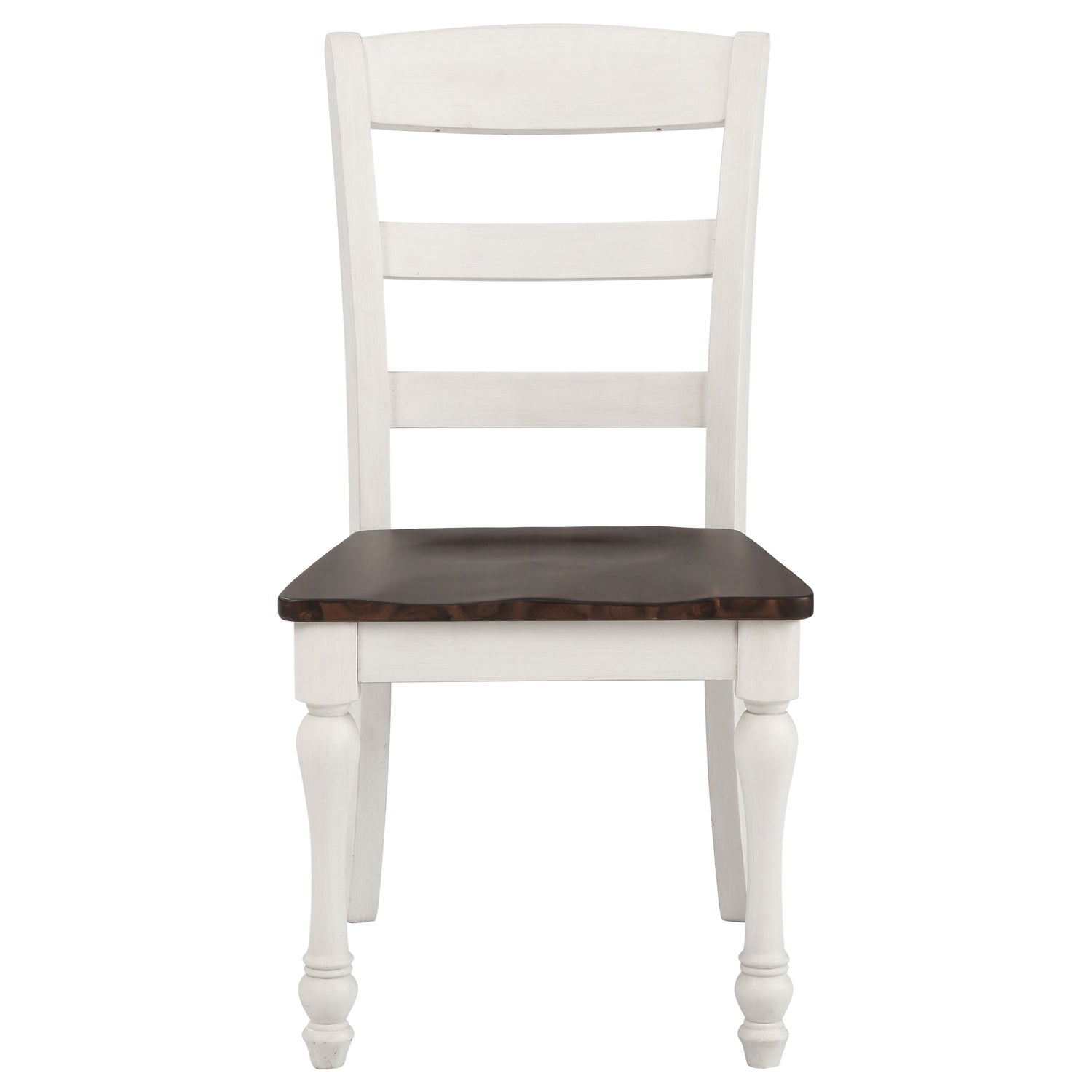 With a stark dual-finish palette contrast and traditional farmhouse motif, this seven-piece wood dining set becomes a welcome staple in your casual living space. Traditional charm takes on design elements found in cottage-style décor, including elegantly turned legs on its spacious table. Wood construction is solid and sturdy, offering a blend of dark cocoa and coastal white finishes. Sit comfortably on ladder-back chairs with dark cocoa seats against white frames, stylish and charming as they reflect more turned elements and curved back legs. Set includes one rectangular dining table and six side chairs.