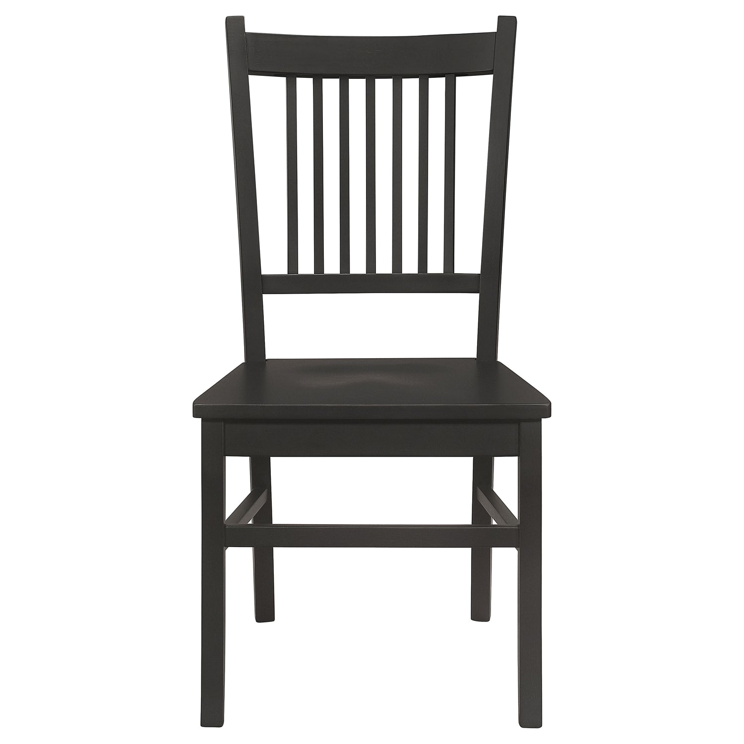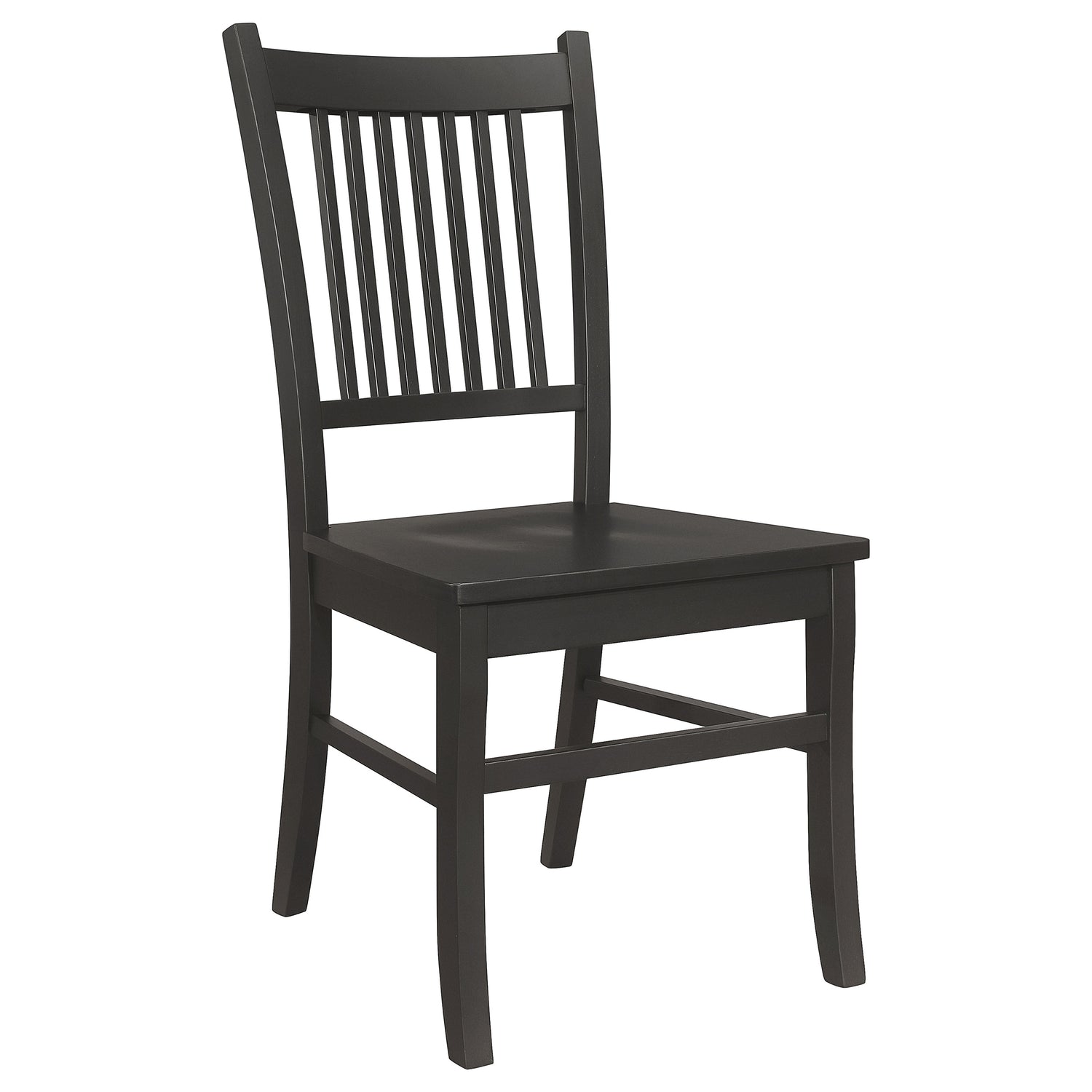 Our mission-style dining collection boasts exposed tenon joints and linear fretwork for a classic look. Crafted with select hardwood and veneers in a sleek matte black finish, the collection includes side chairs with classic mission design that combines style and function effortlessly.