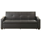 The versatile marcelo collection will give your house the seating and sleeping space it needs to meet your needs. this multi-functional sofa may be converted into a bed by means of a pull-out trundle that is activated when the click mechanism sofa is placed in its most reclined position. cup holders and a cover made of imitation leather in black with white contrast stitching are a couple of the additional features.